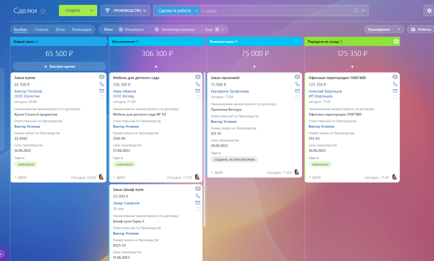 Отраслевое решение CRM для мебельной компании помогает организовать работу с индивидуальными заказами на производстве, рекламациями и отказниками.
