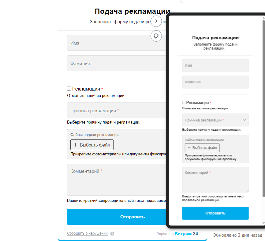 - Файл подаваемой рекламации - Прикрепленный файл подаваемой рекламации
