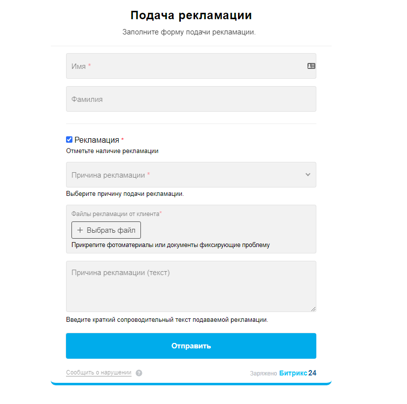 - Файл подаваемой рекламации - Прикрепленный файл подаваемой рекламации