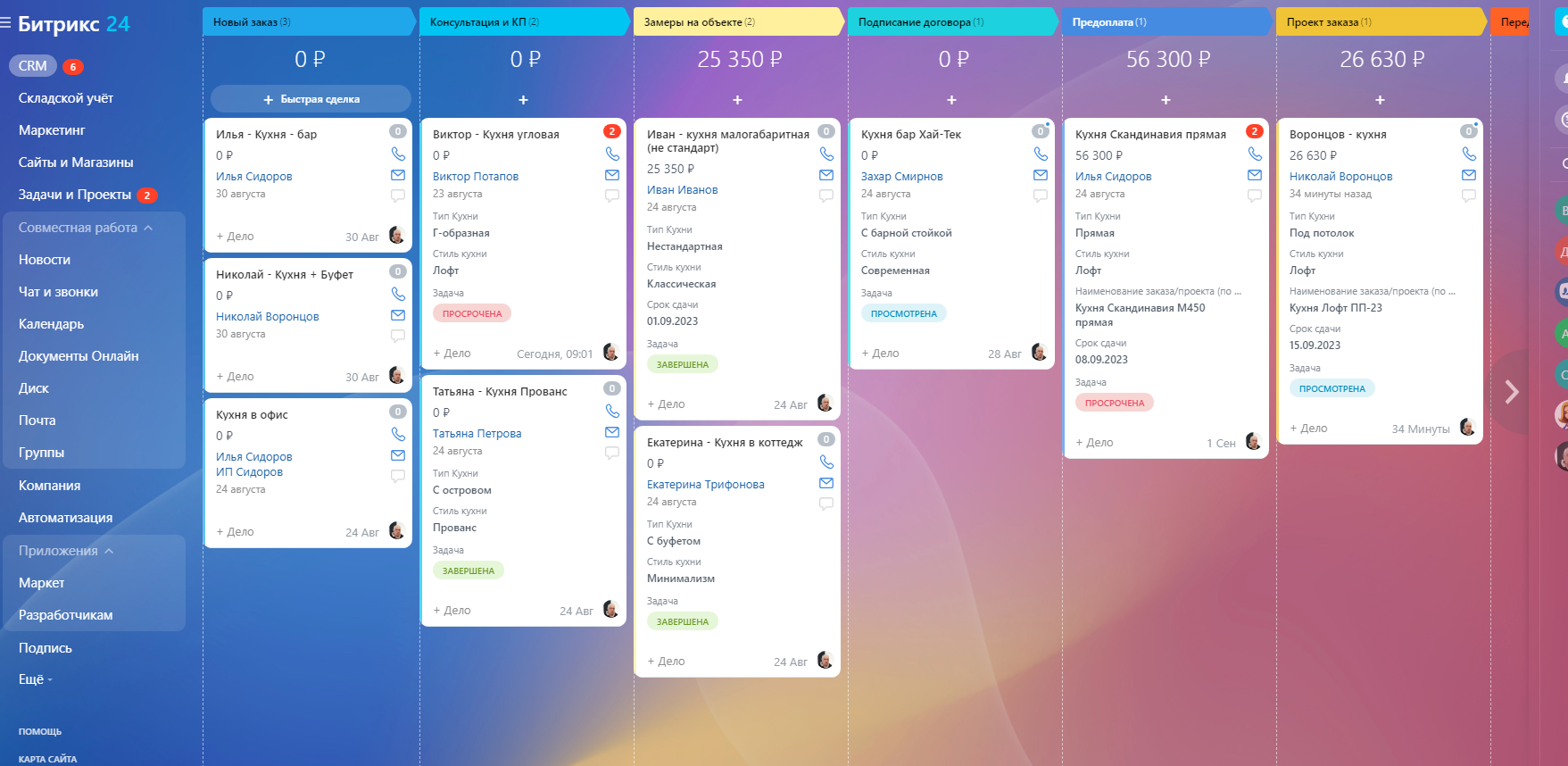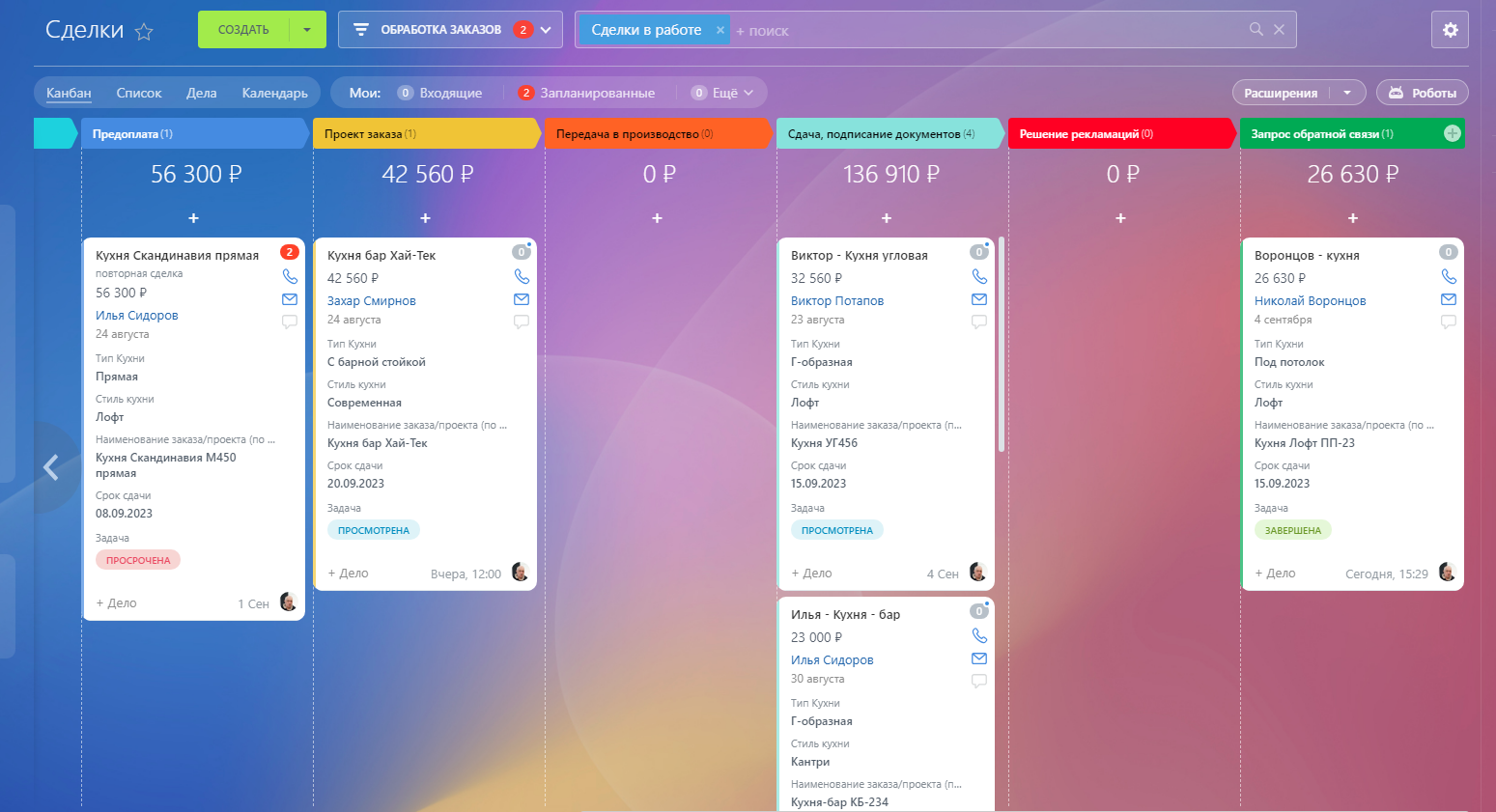 Отраслевое решение CRM для компаний по производству и продаже кухонь. Помогает организовать работу с индивидуальными заказами на производстве, рекламациями и отказниками.