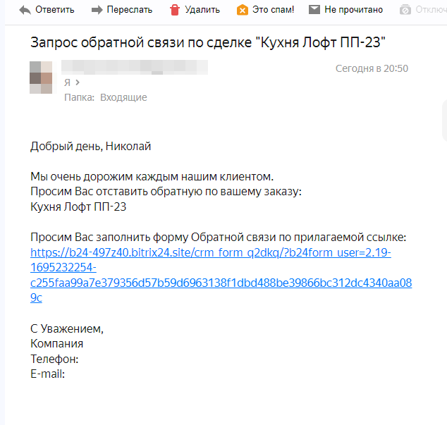 - Наименование заказа/проекта (по договору) - Наименование заказа по договору для вставки в сообщения клиенту по сделке
