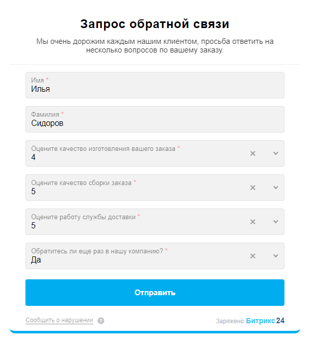При переходе сделки между стадиями настроен контроль заполнения обязательных полей менеджером, что данные сделки заполнялись правильно.