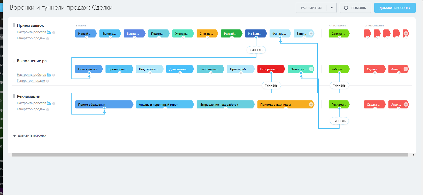 Настройки формализации/декомпозиции воронки продаж и универсальных туннелей продаж;