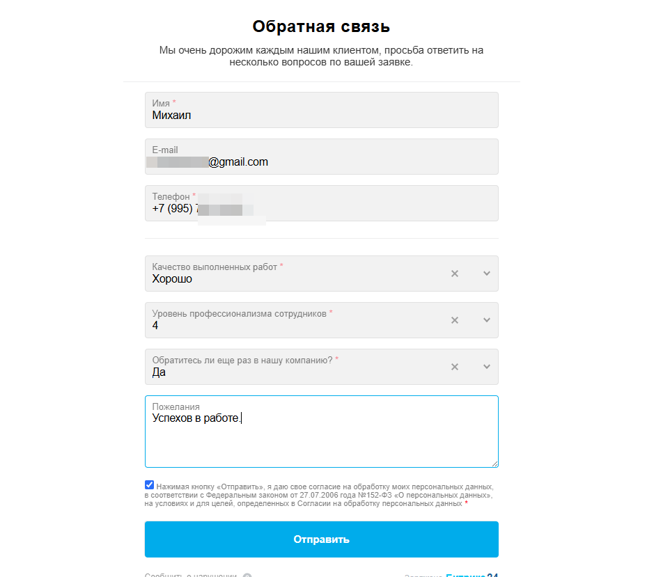 Качество выполненных работ, Уровень профессионализма сотрудников, Обратитесь ли еще раз в нашу компанию?, Пожелания.
