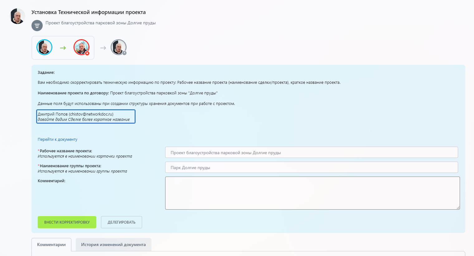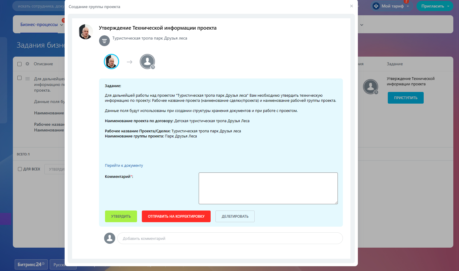- Комментарий – Внутренний комментарий к проекту