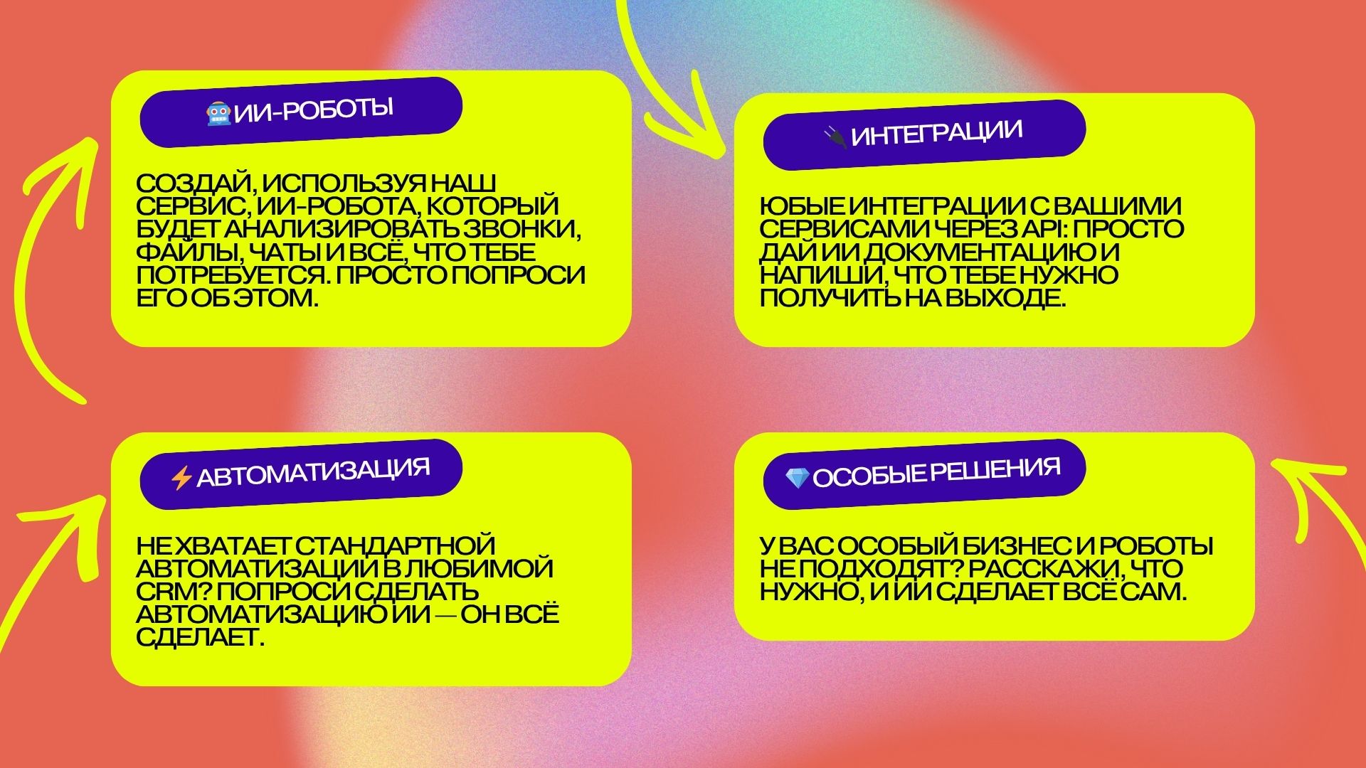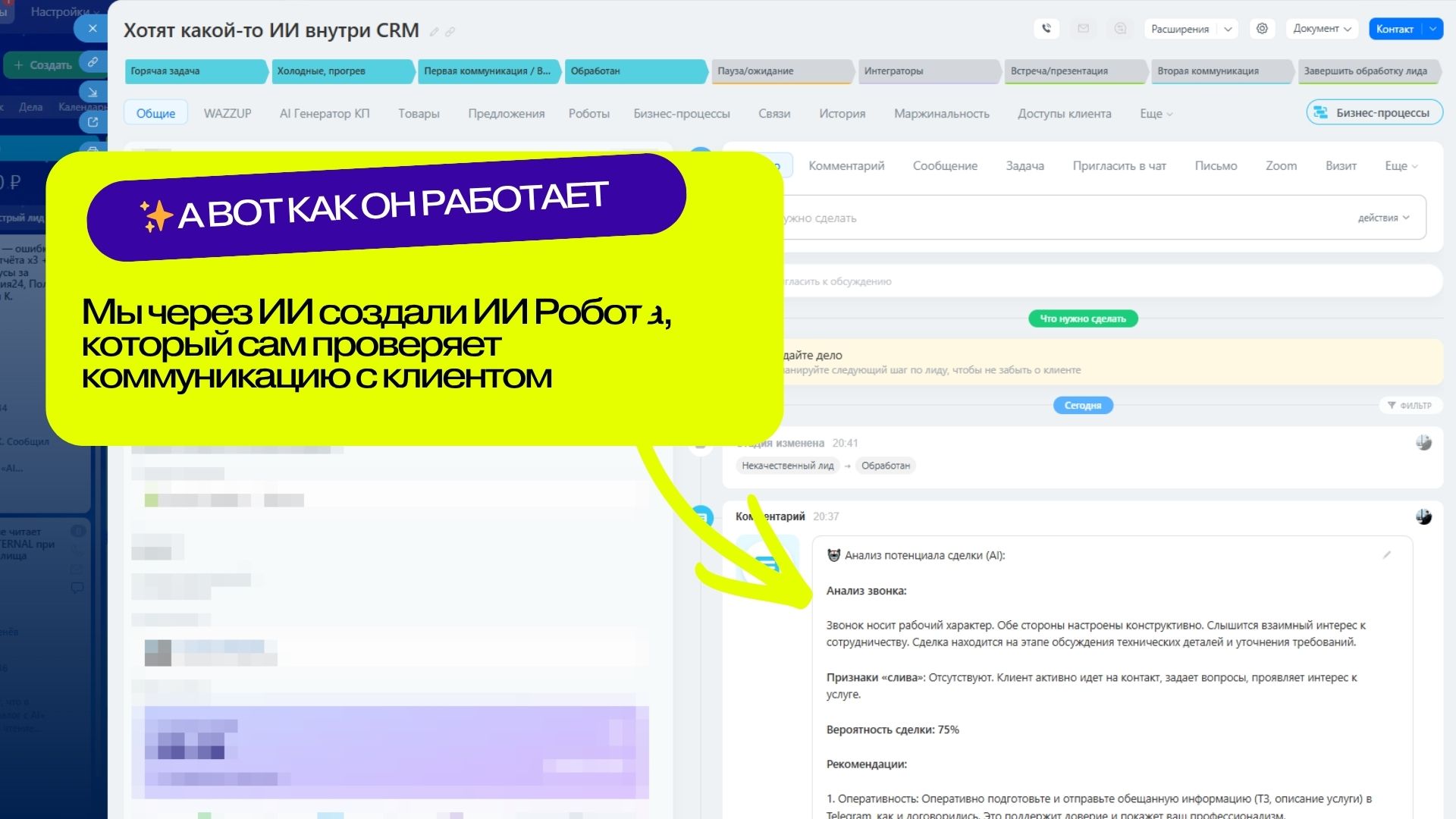 AI Робот24 — это профессиональная студия разработки роботов и активити для бизнес-процессов внутри CRM с помощью искусственного интеллекта. Приложение позволяет любому пользователю — от маркетолога до руководителя — создавать сложные автоматизации без знания программирования, просто описывая задачу в чате.