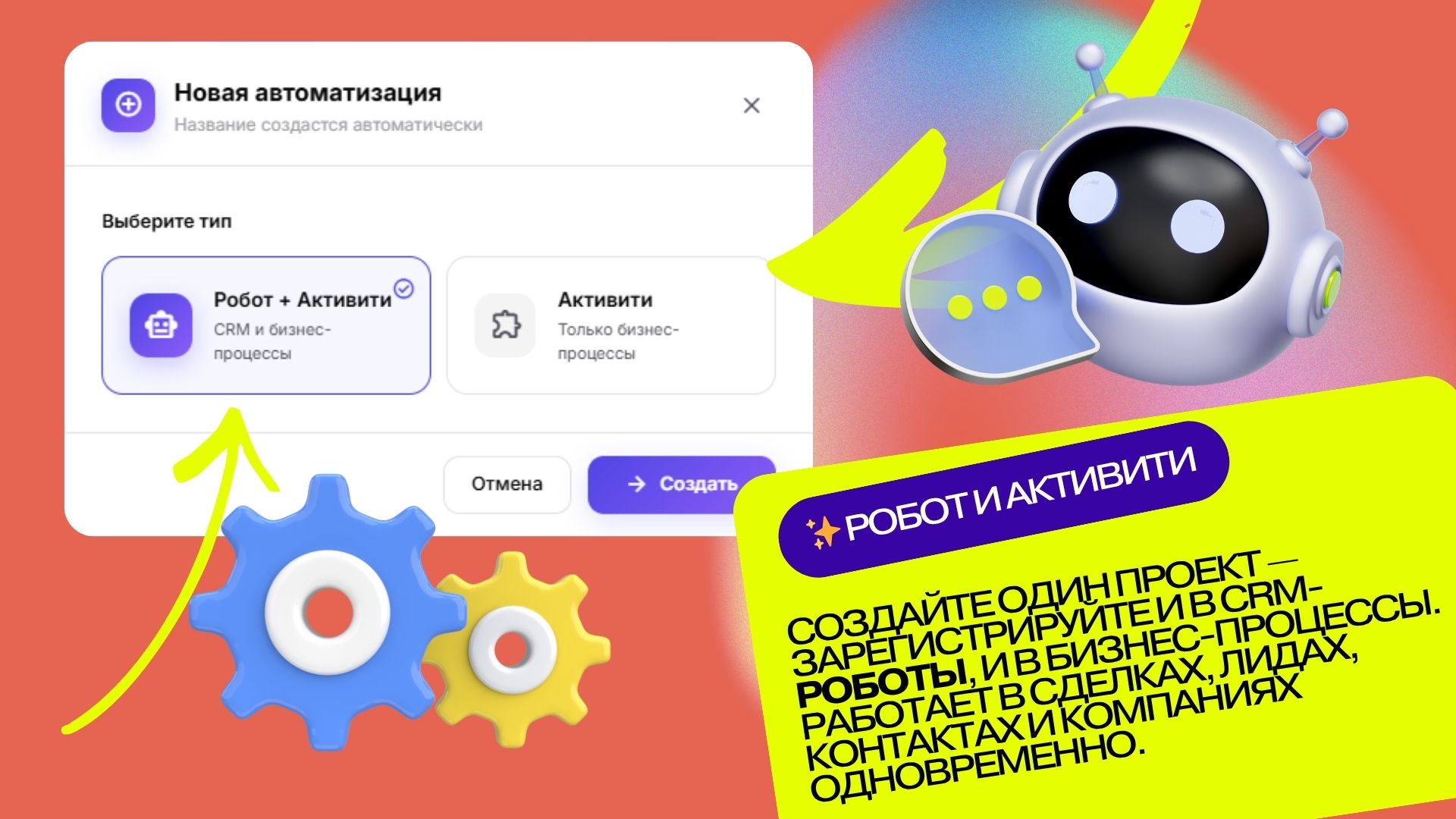 - Выбор типа регистрации: Робот (CRM автоматизация) и/или Активити (бизнес-процессы)