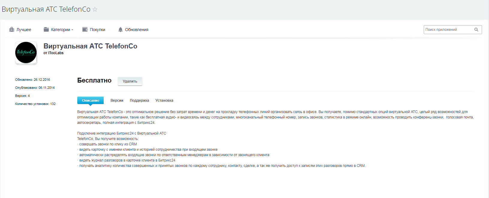 Виртуальная АТС TelefonCo - это оптимальное решение без затрат времени и денег на прокладку телефонных линий организовать связь в офисе. Вы получаете, помимо стандартных опций виртуальной АТС, целый ряд возможностей для оптимизации работы компании, такие как бесплатная аудио- и видеосвязь между сотрудниками, многоканальный телефонный номер, запись звонков, статистика в режиме онлайн, возможность проводить конференц-звонки, голосовая почта, автосекретарь, полная интеграция с Битрикс24.