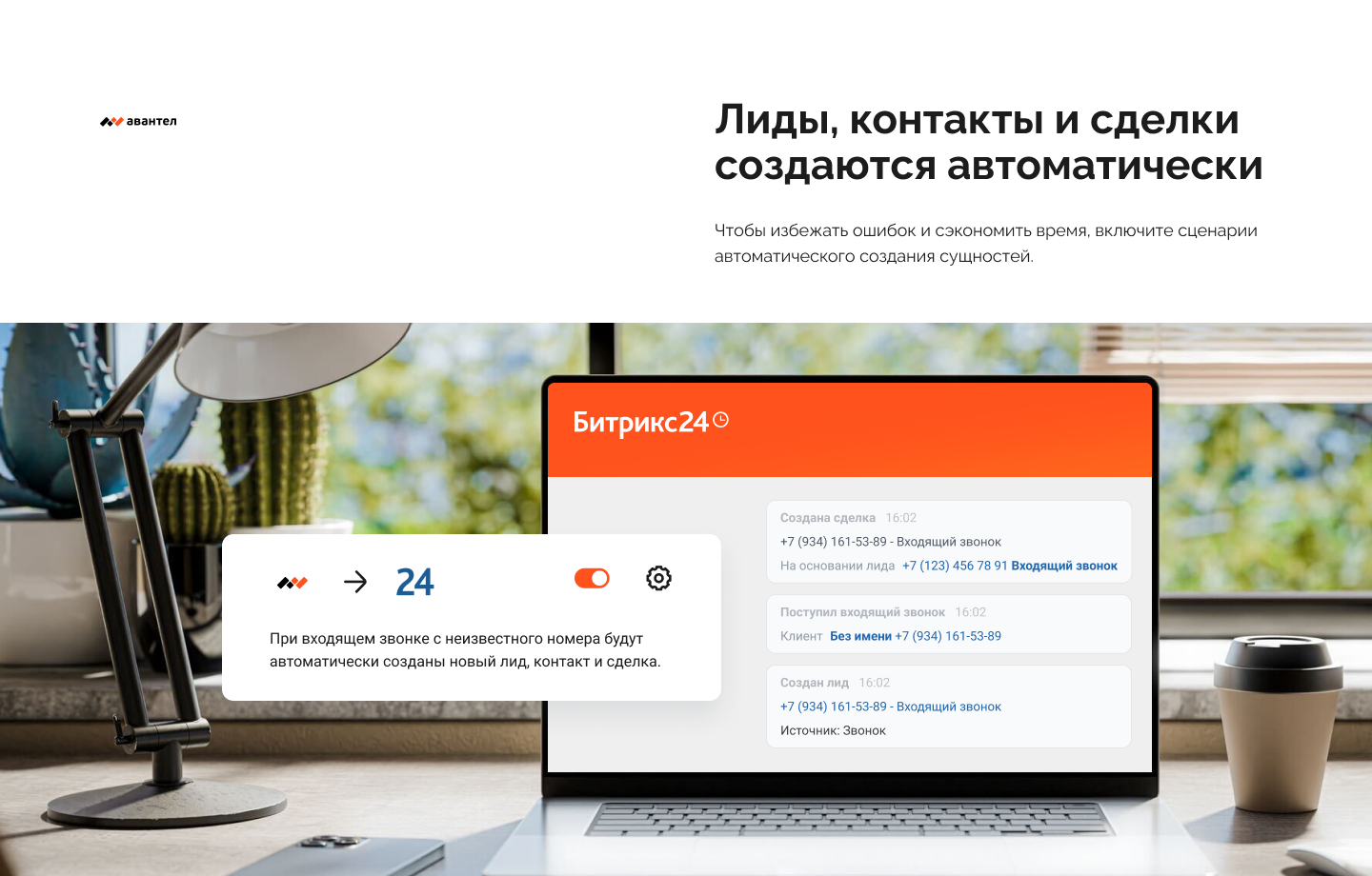 • Автоматическое создание лидов и сделок при звонках с новых номеров;