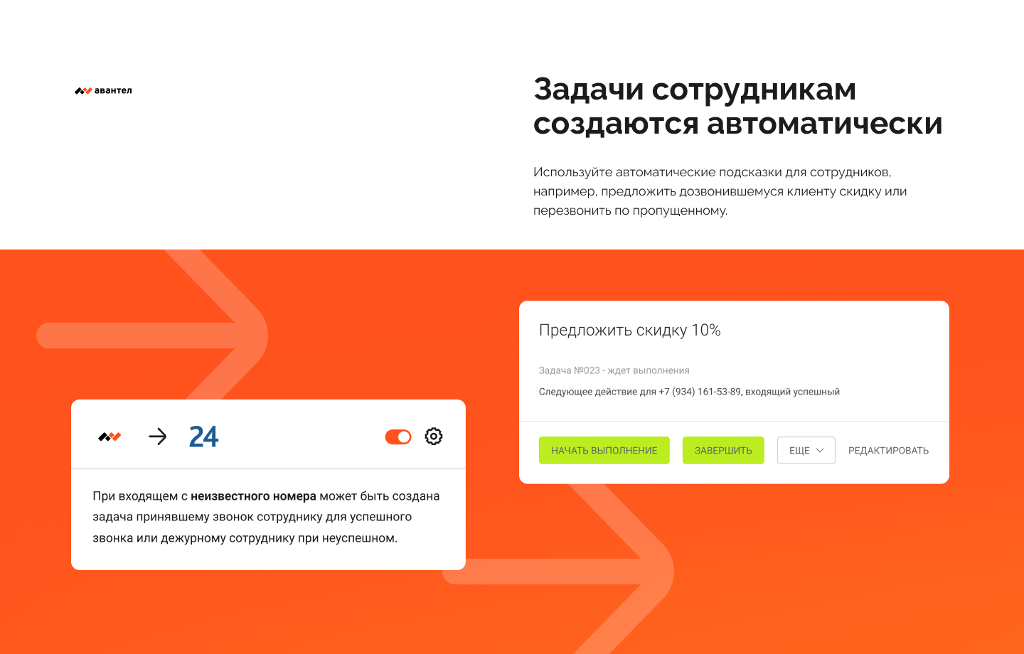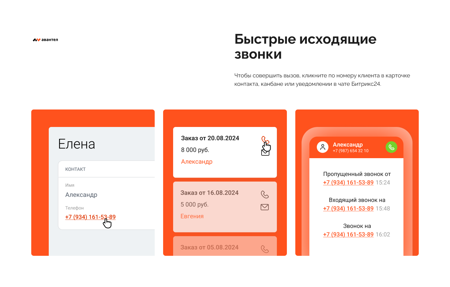 • Всплывающие карточки клиентов при входящих звонках;
