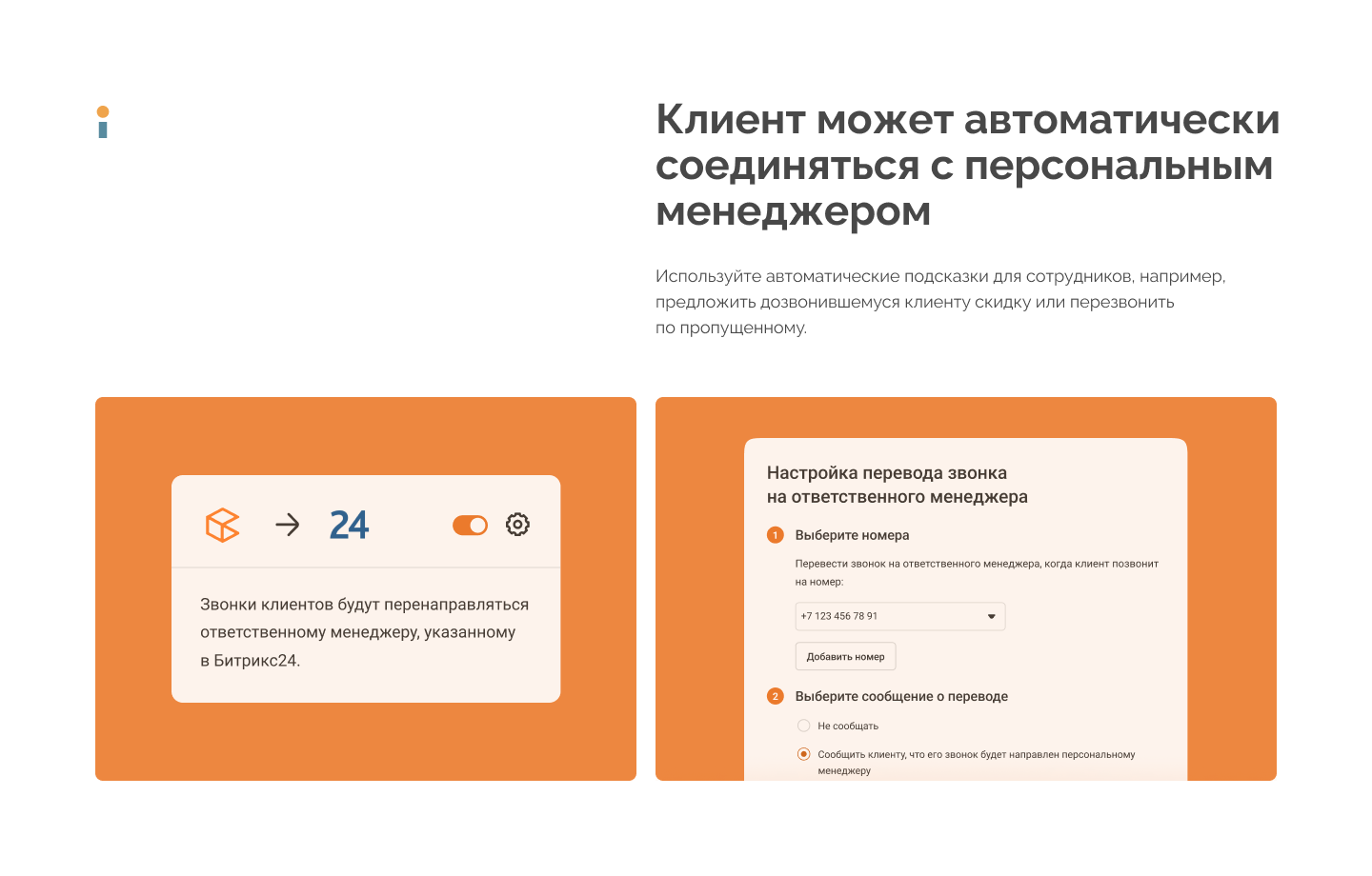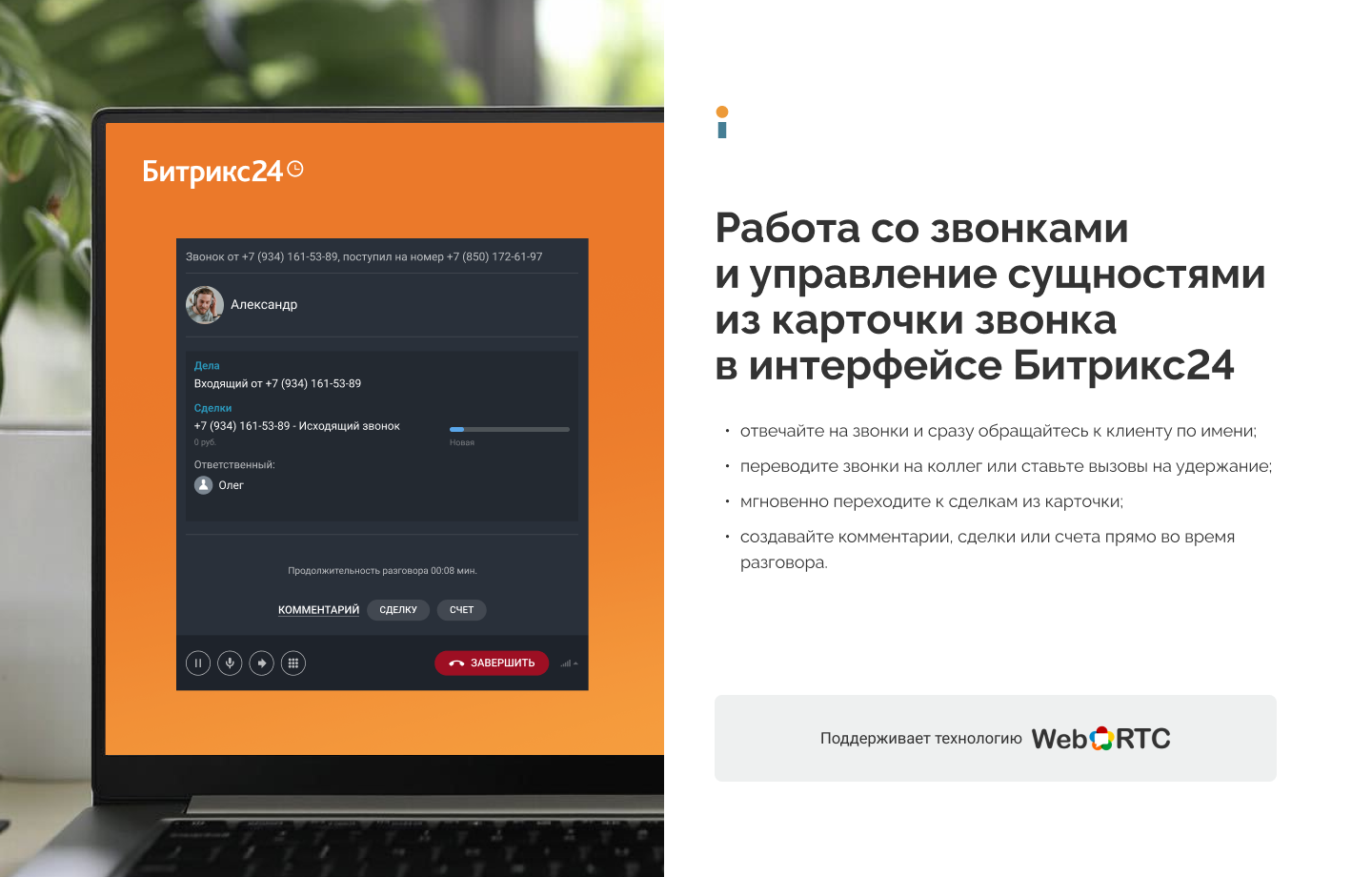 1. При входящем звонке в Битрикс24 автоматически всплывет карточка клиента со всеми его данными.