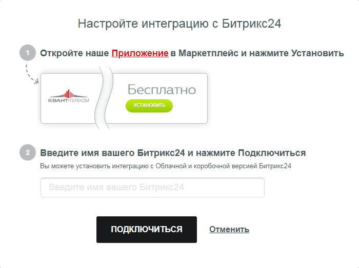 Возможности интеграции Виртуальной АТС КВАНТ-ТЕЛЕКОМ и Битрикс24: