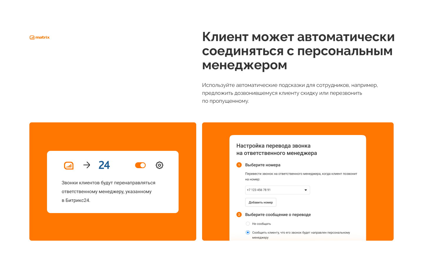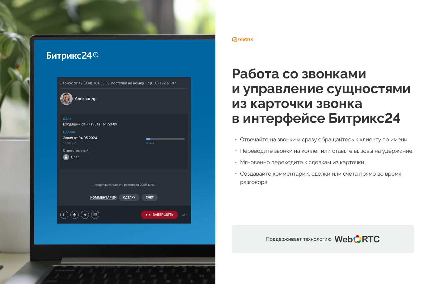 Возможности интеграции Виртуальной АТС Матрикс Мобайл и Битрикс24: