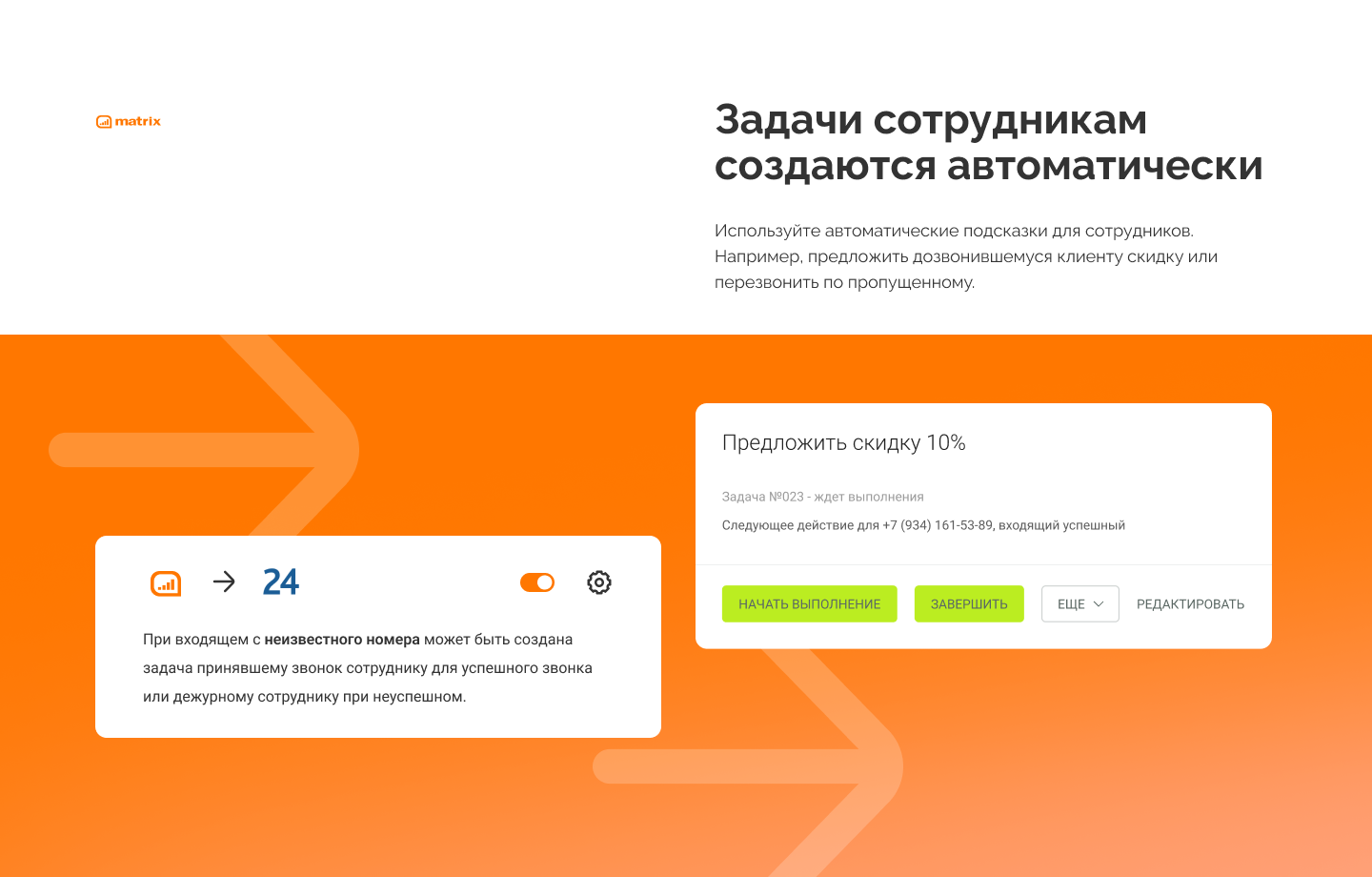 · Автоматическое создание лидов и сделок при звонках с новых номеров;