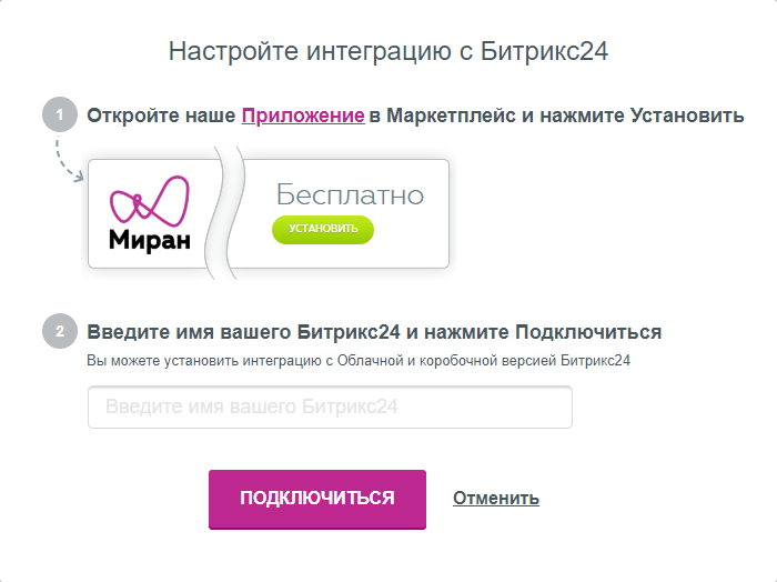 Возможности интеграции Виртуальной АТС Миран и Битрикс24: