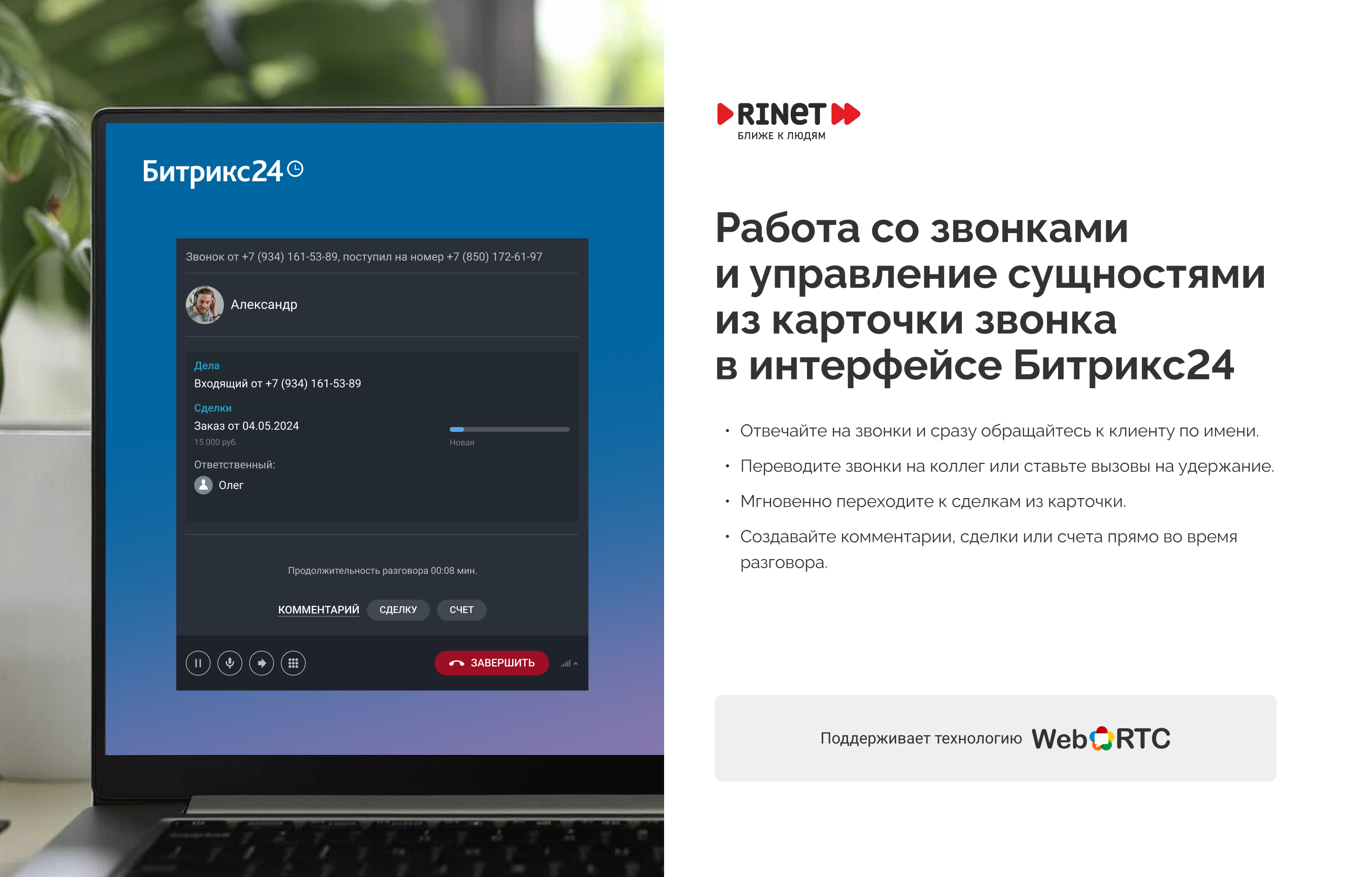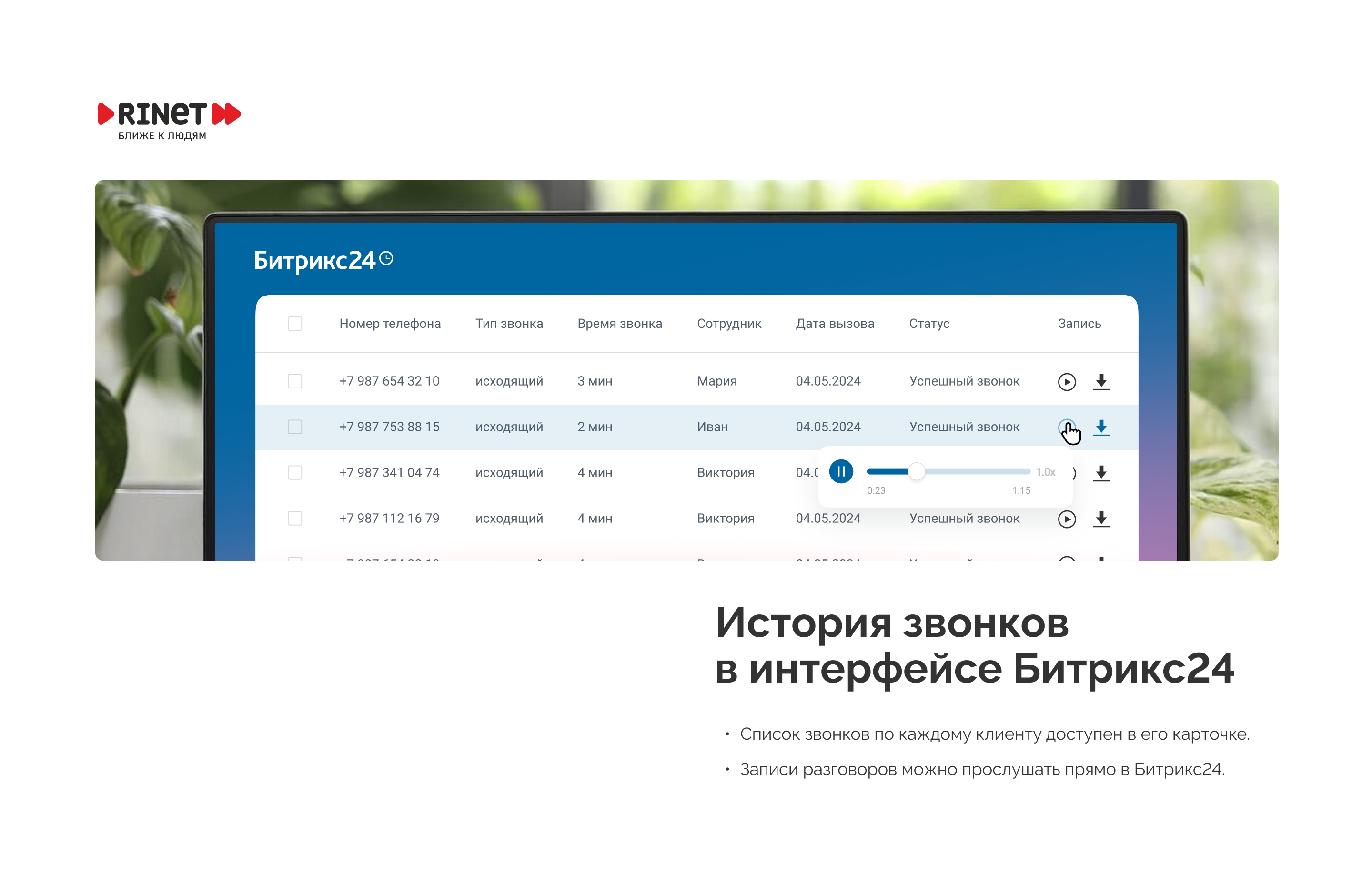Возможности интеграции виртуальной АТС Rinet и Битрикс24: