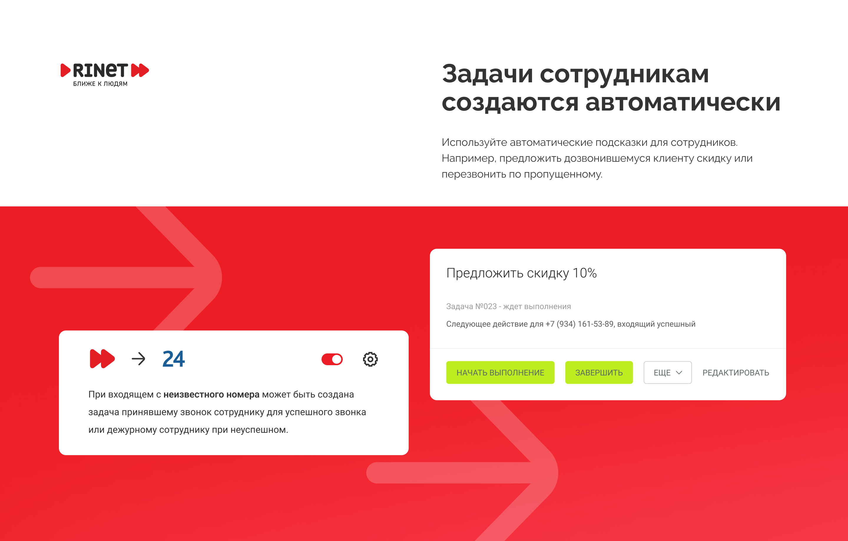 • Всплывающие карточки клиентов при входящих звонках;