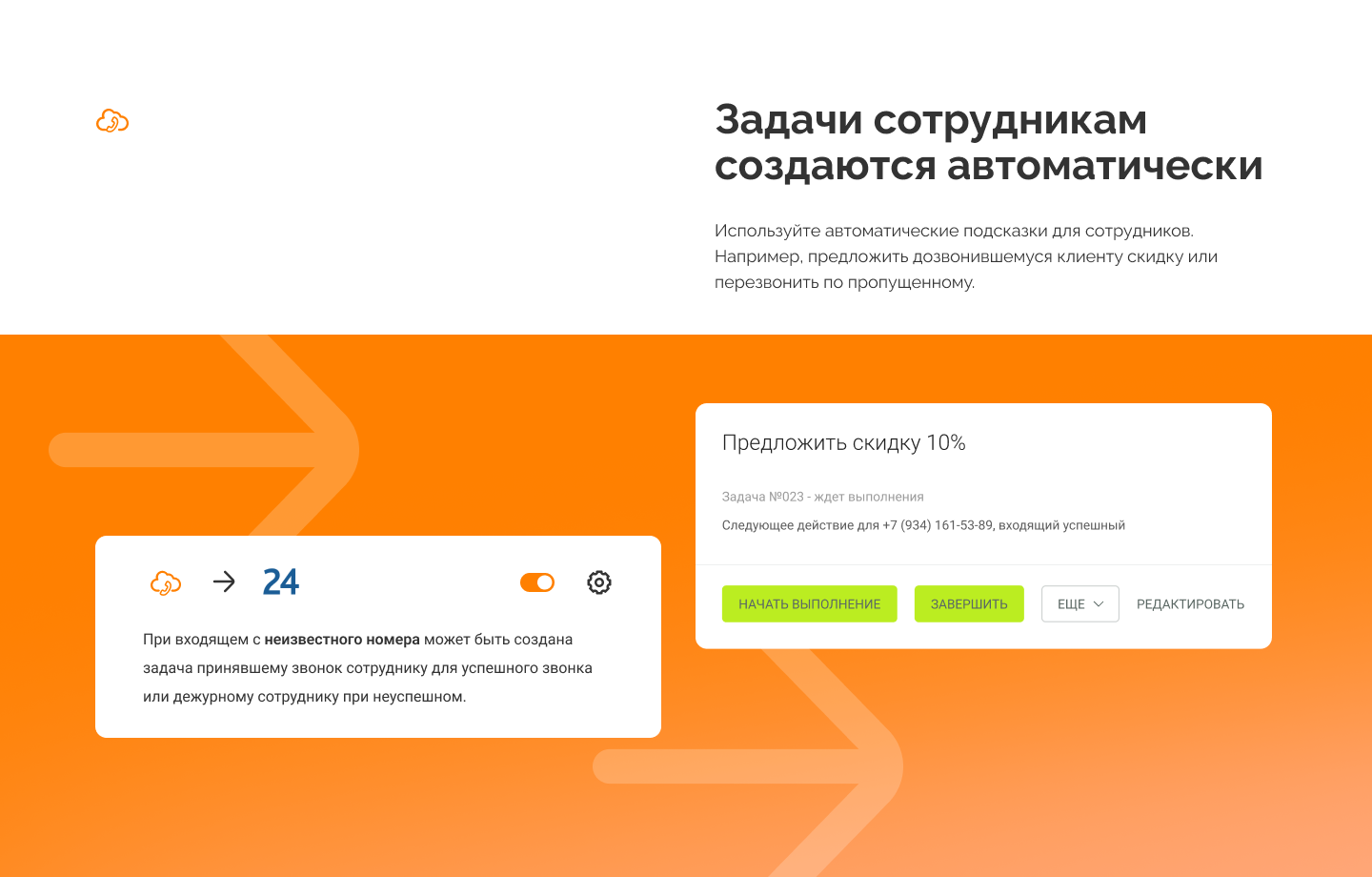 · Автоматическое создание лидов и сделок при звонках с новых номеров;