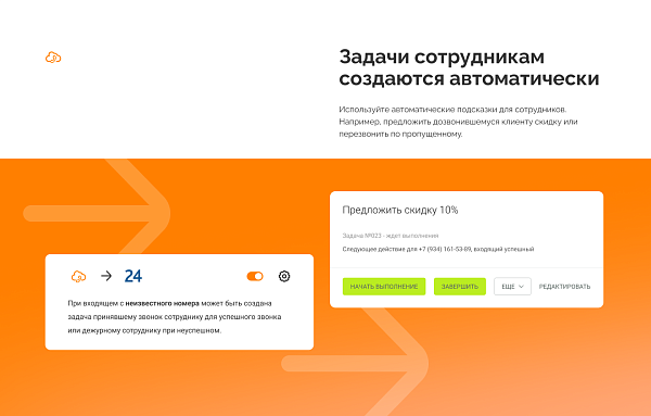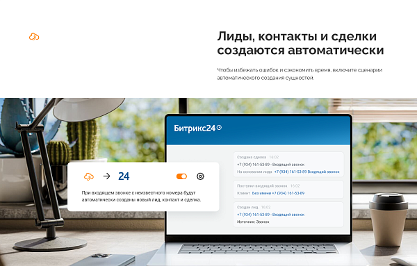 · Автоматическое создание лидов и сделок при звонках с новых номеров;