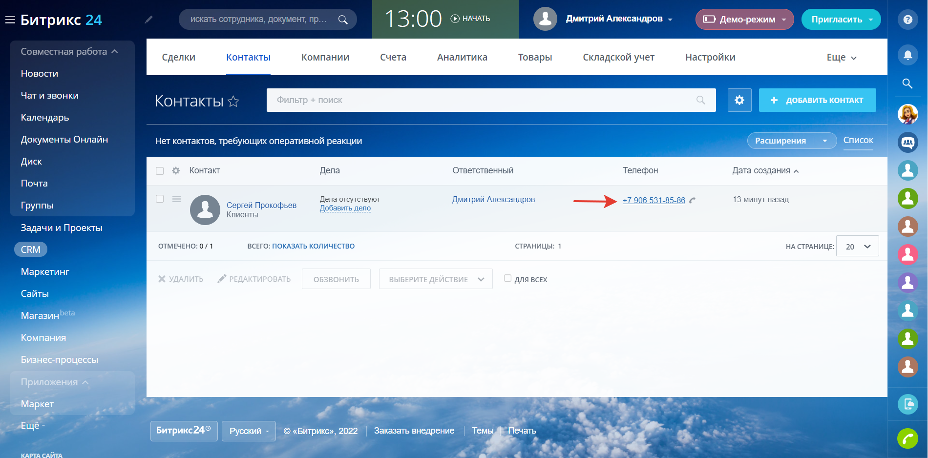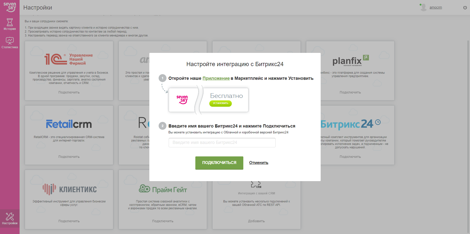 Возможности интеграции Виртуальной АТС Seven Sky и Битрикс24: