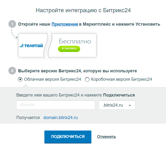 Возможности интеграции Виртуальной АТС Телетай и Битрикс 24: