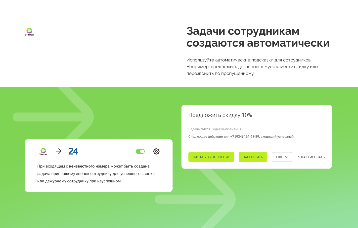 · Автоматическое создание лидов и сделок при звонках с новых номеров;
