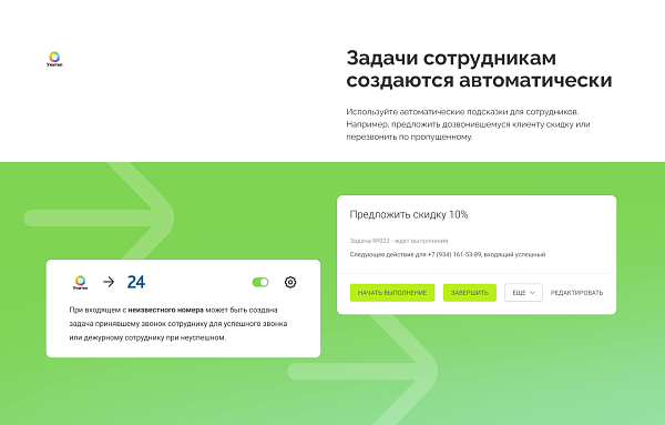 · Автоматическое создание лидов и сделок при звонках с новых номеров;
