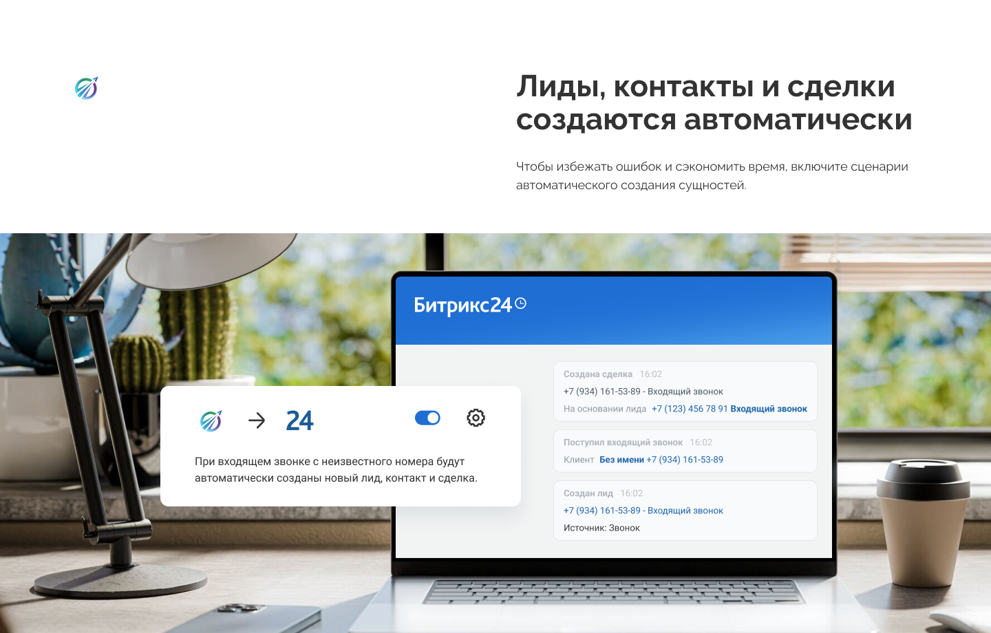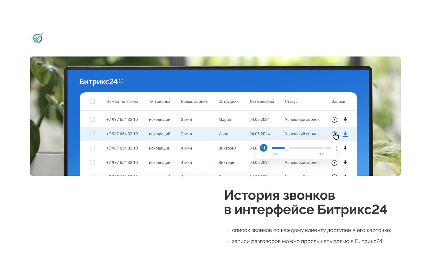 5. Все звонки и их записи фиксируются в карточке контакта;