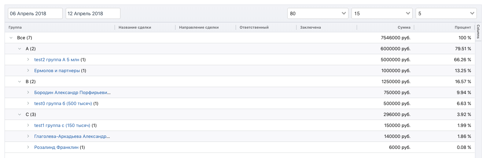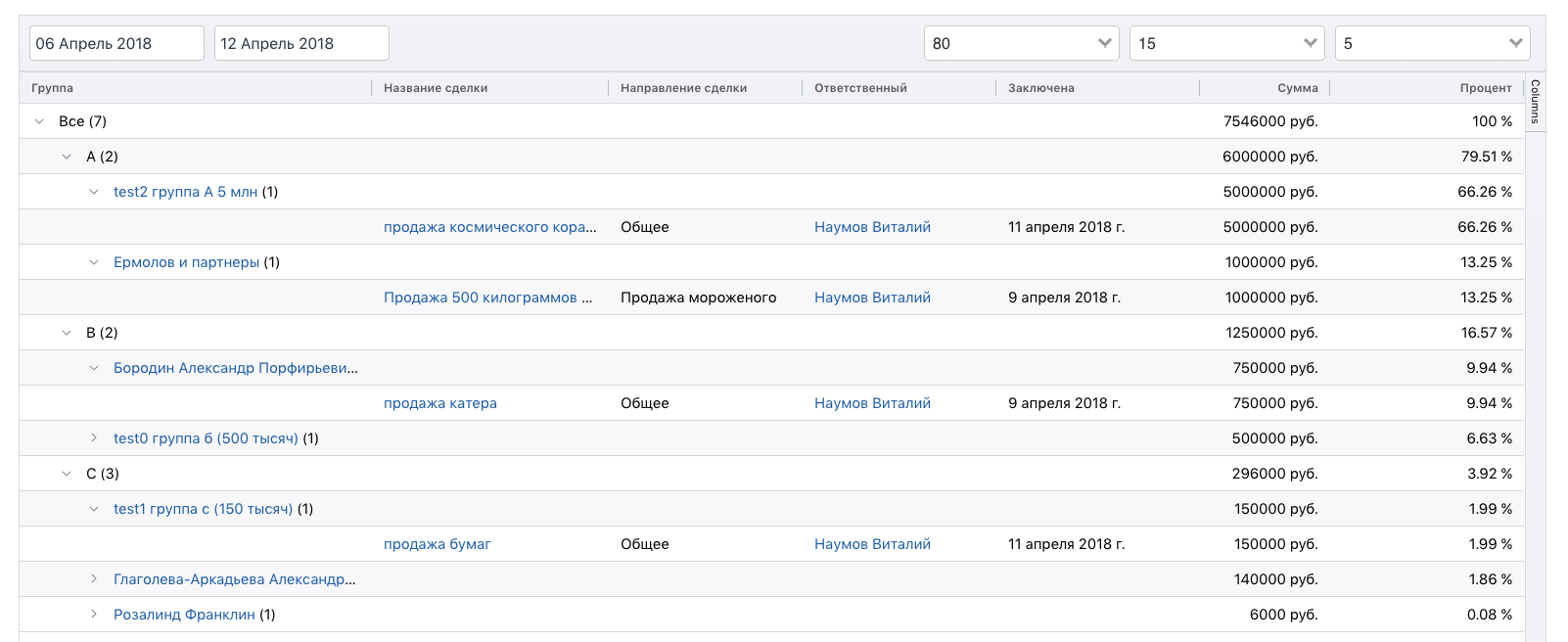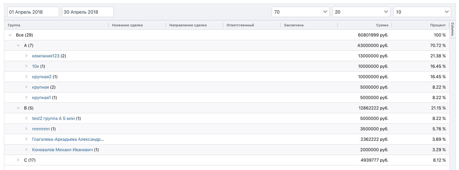 Тем самым, после использования приложения “ABC анализ”, Вы с легкостью сможете строить дальнейшие планы работы с компаниями на следующий месяц.