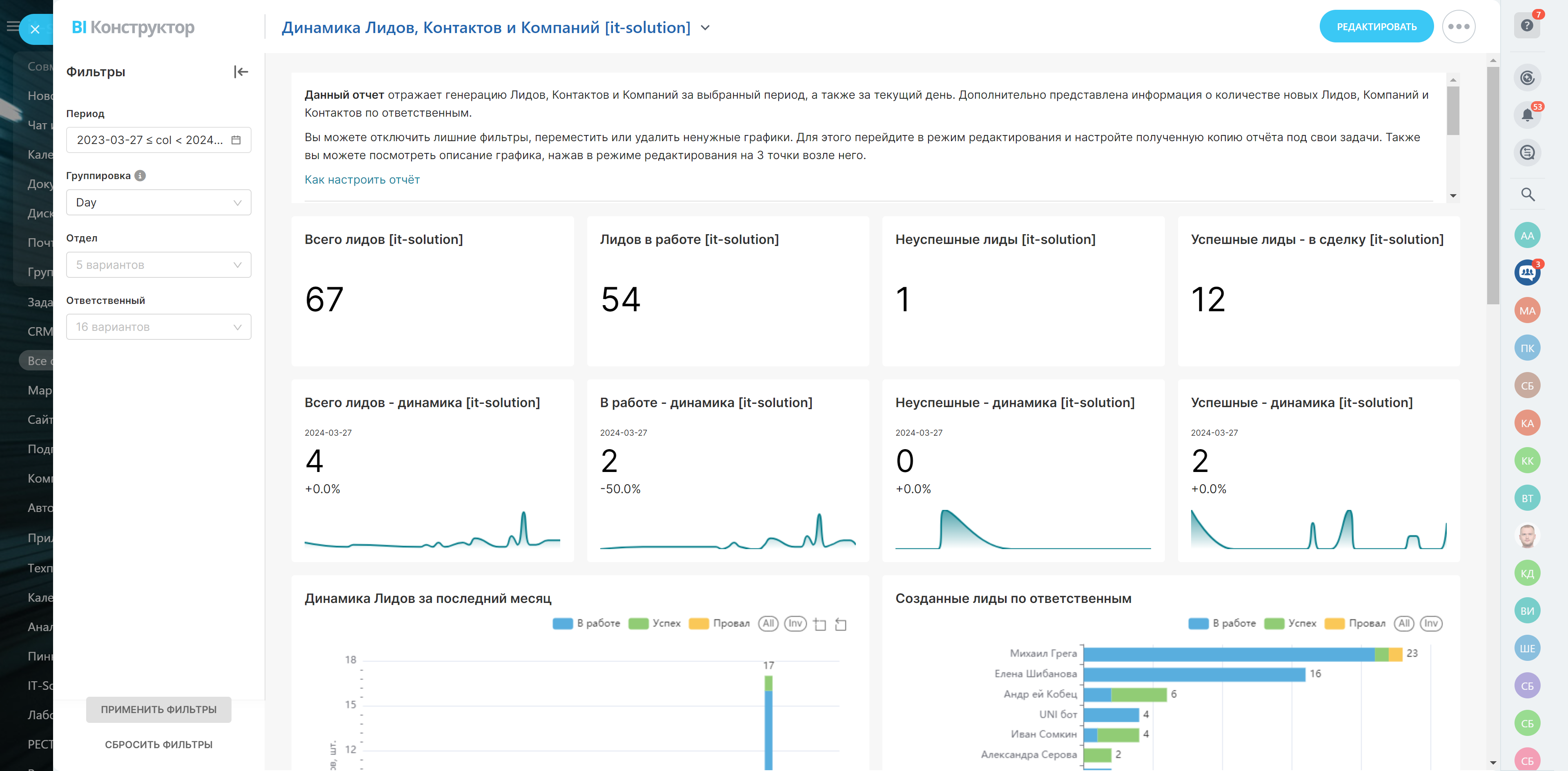 Объективная аналитика по лидам, контактам и компаниям для руководителей