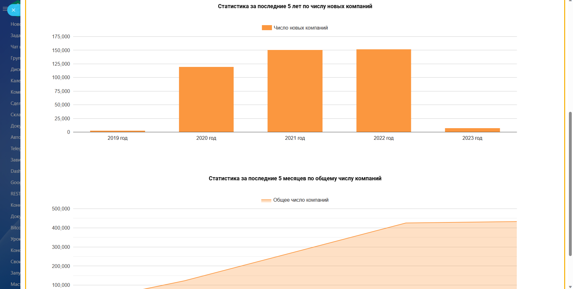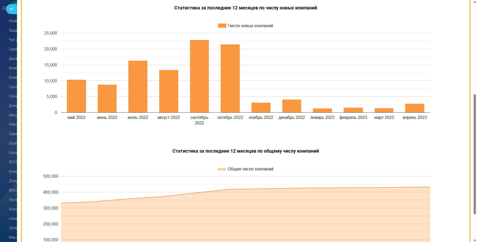 - Динамику роста общего числа Компаний и числа новых Компаний;