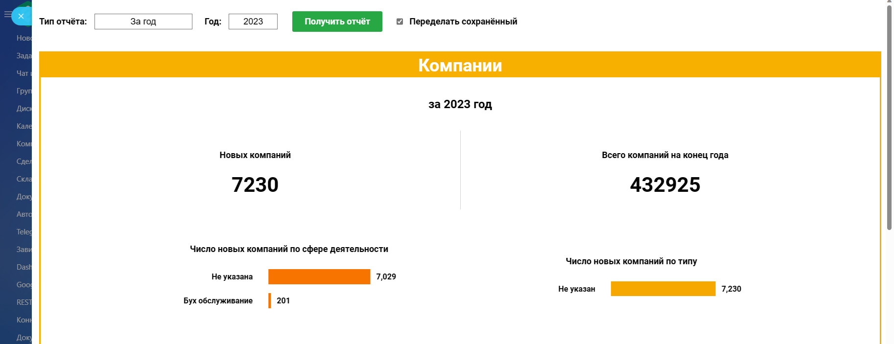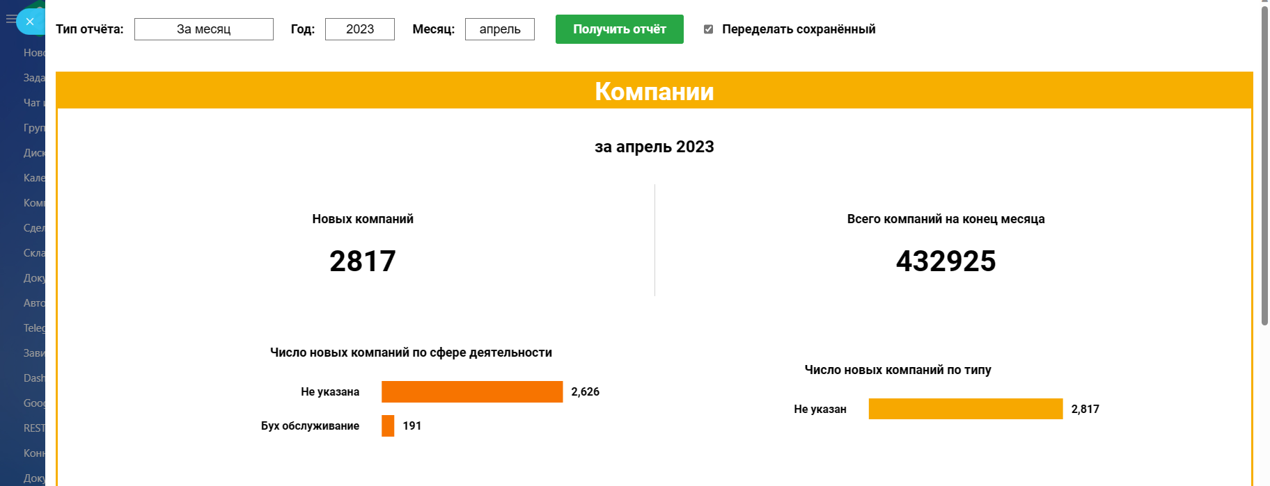 - Количество новых и всех Компаний на конец отчётного периода;