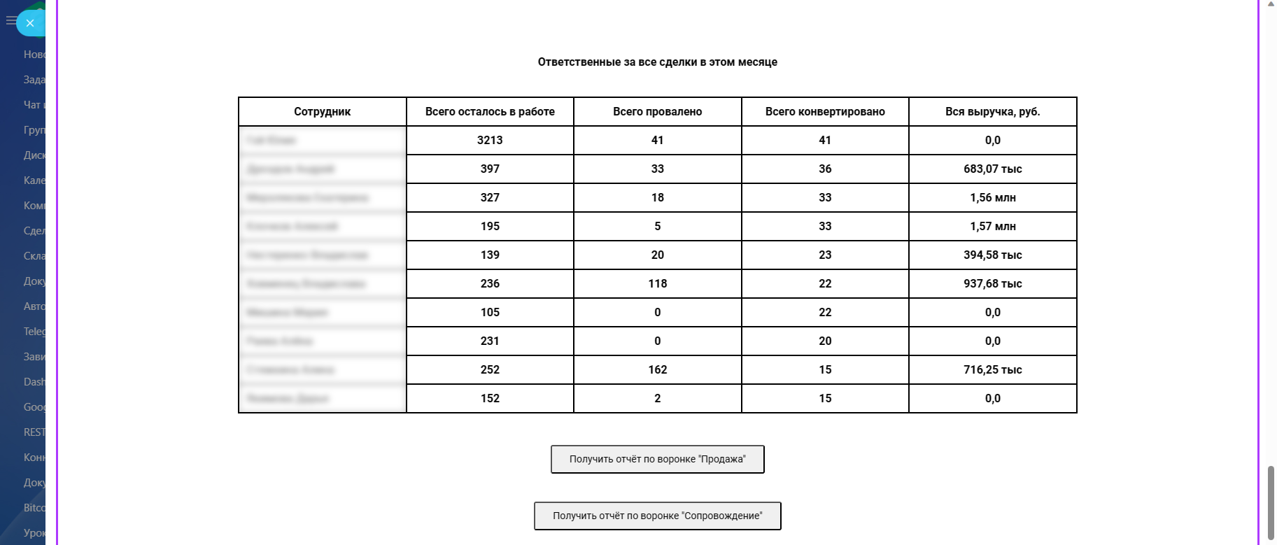 - Рейтинг ответственных за Лиды с основными показателями по новым и всем Сделкам.