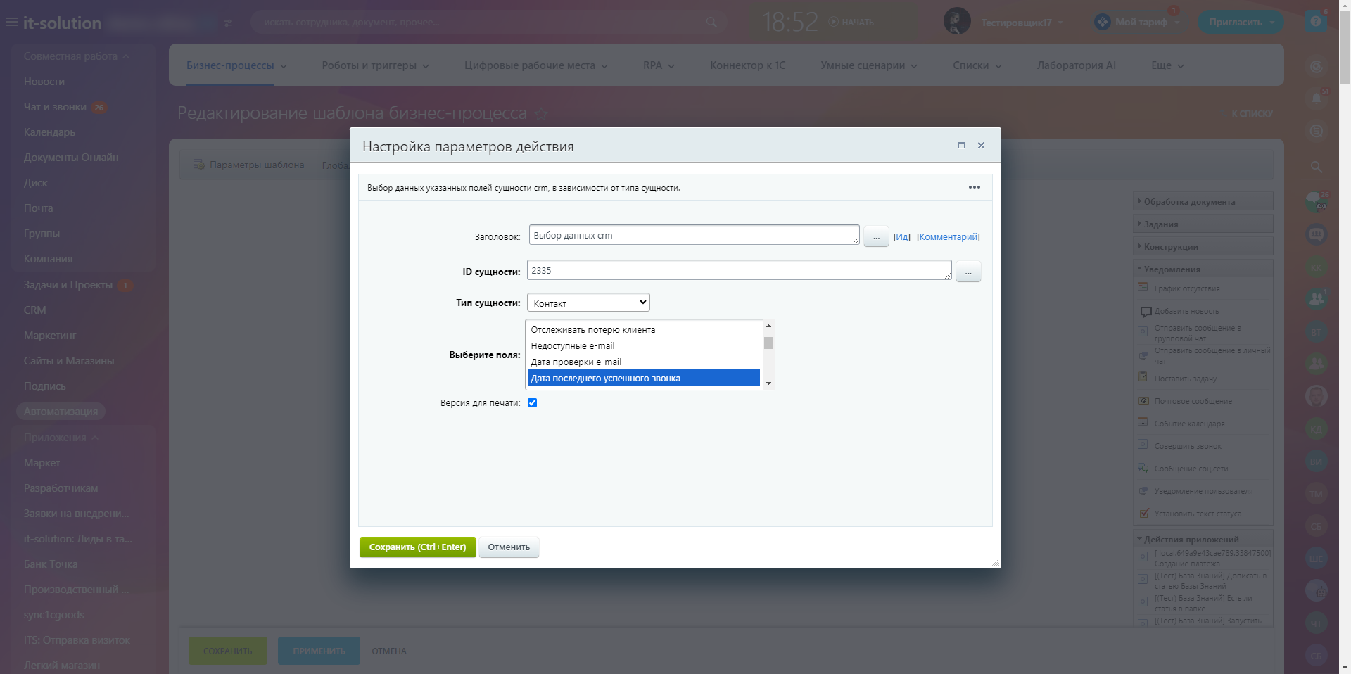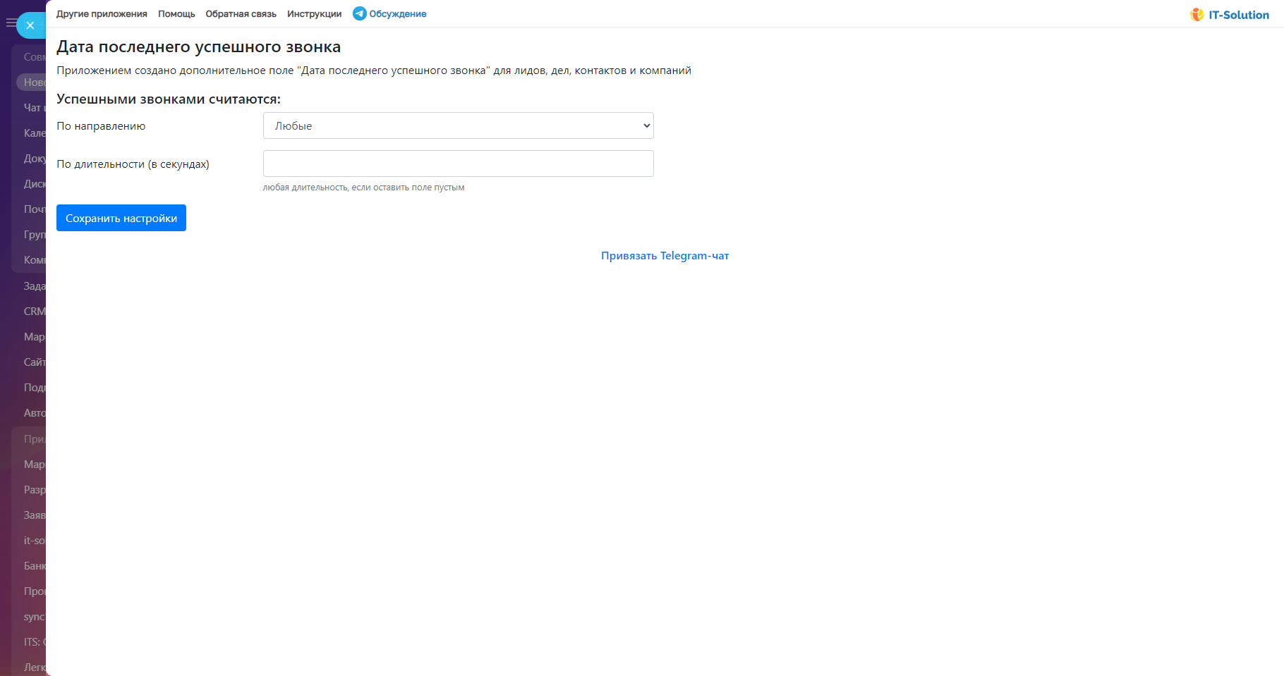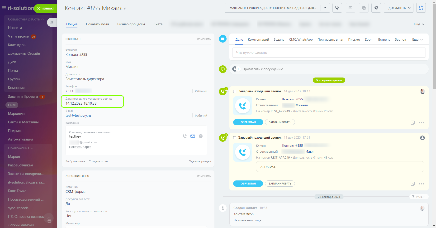 Приложение сохраняет дату последнего звонка в карточку CRM