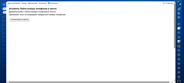 Приложение добавляет на портал робота и действие БП "Найти номера телефонов в тексте".