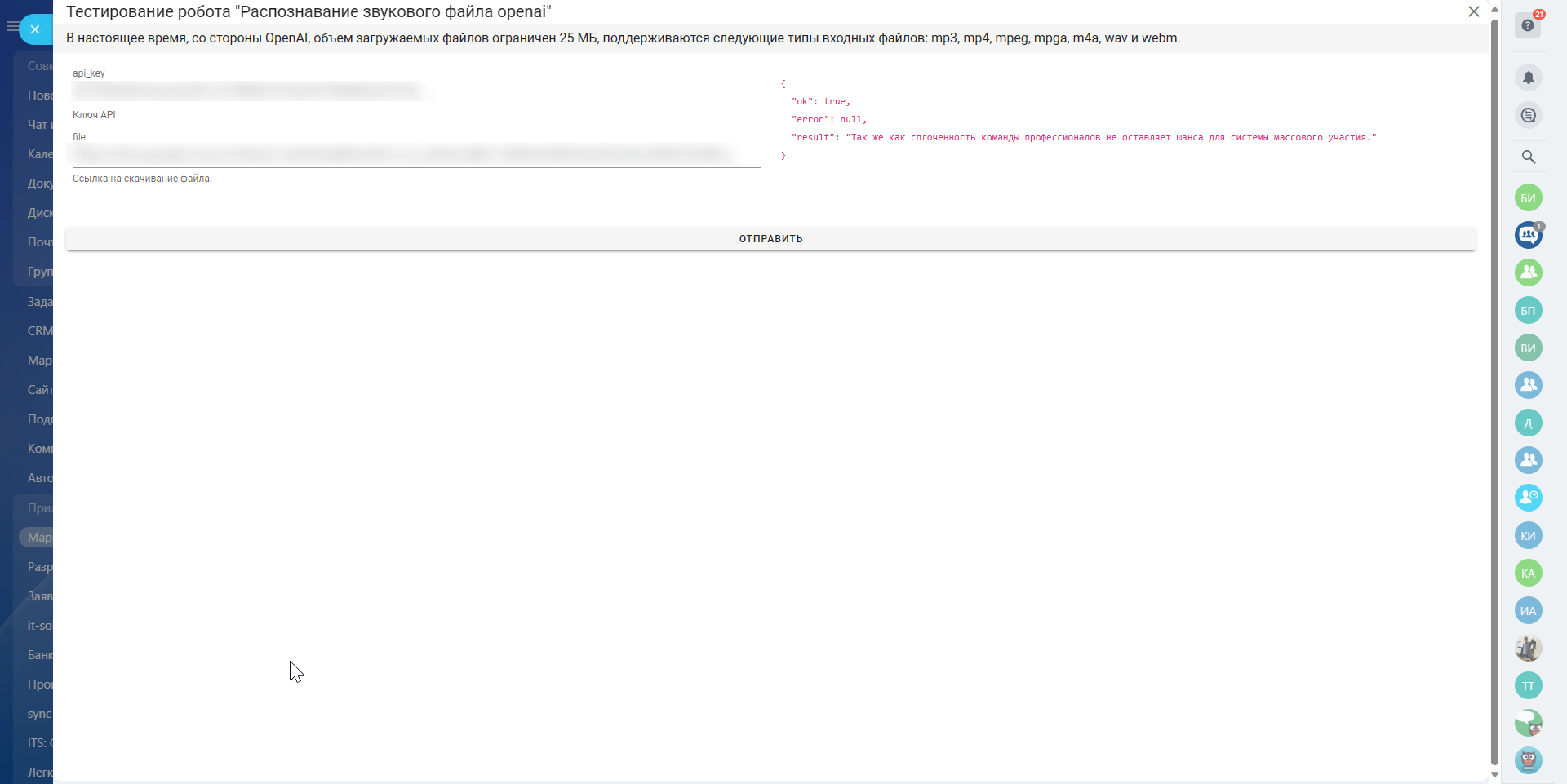 Активити: распознавание звукового файла через OpenAI