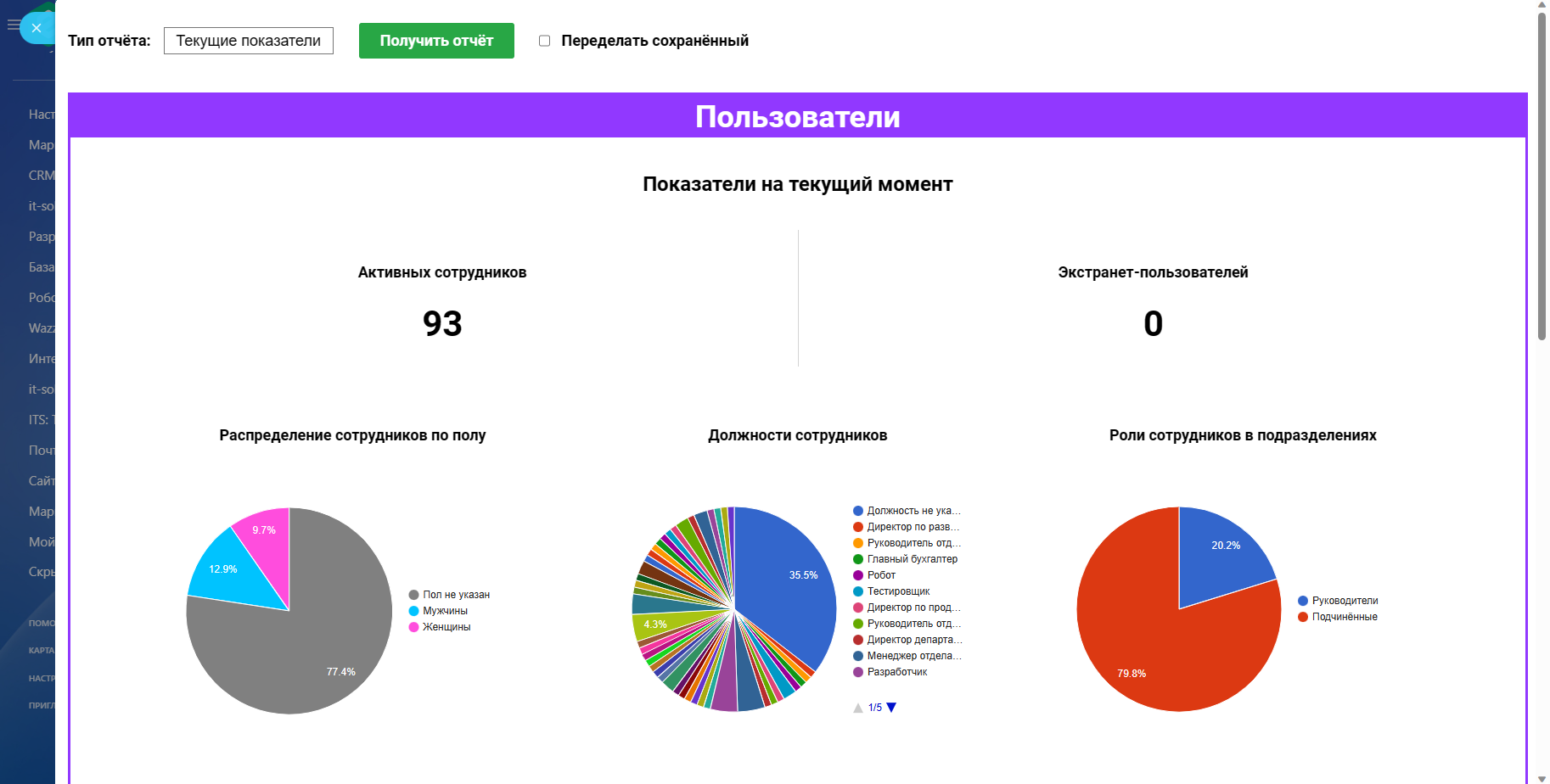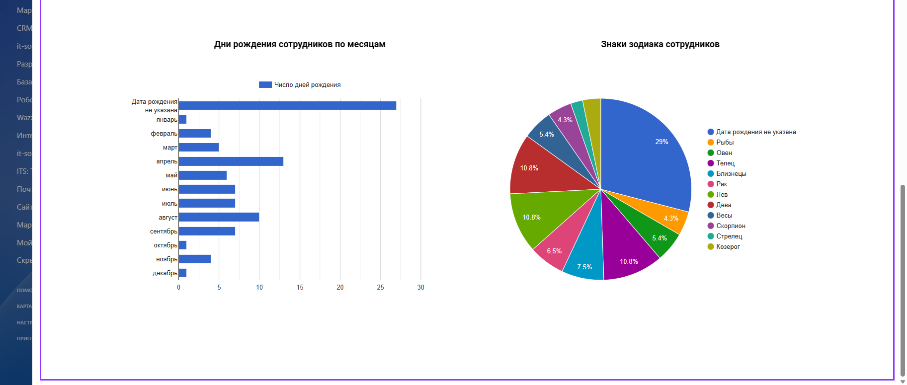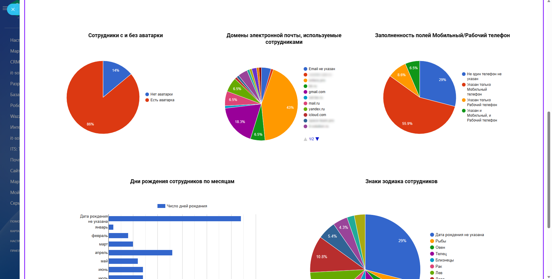 - Проценты сотрудников с заполненным мобильным и рабочим телефоном