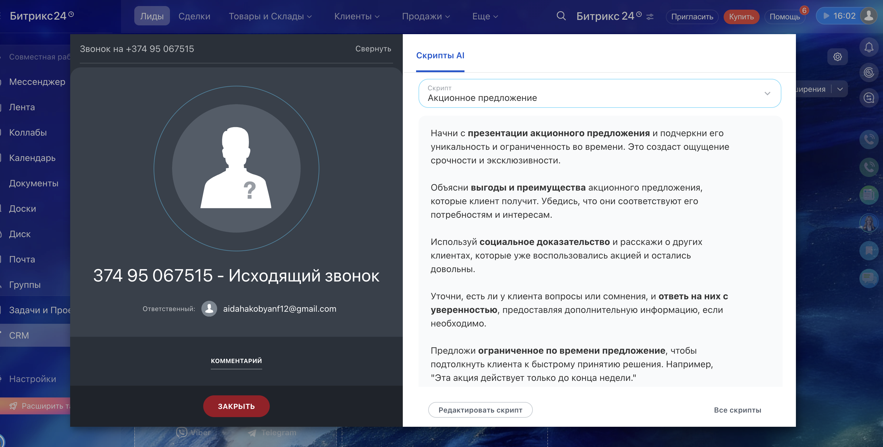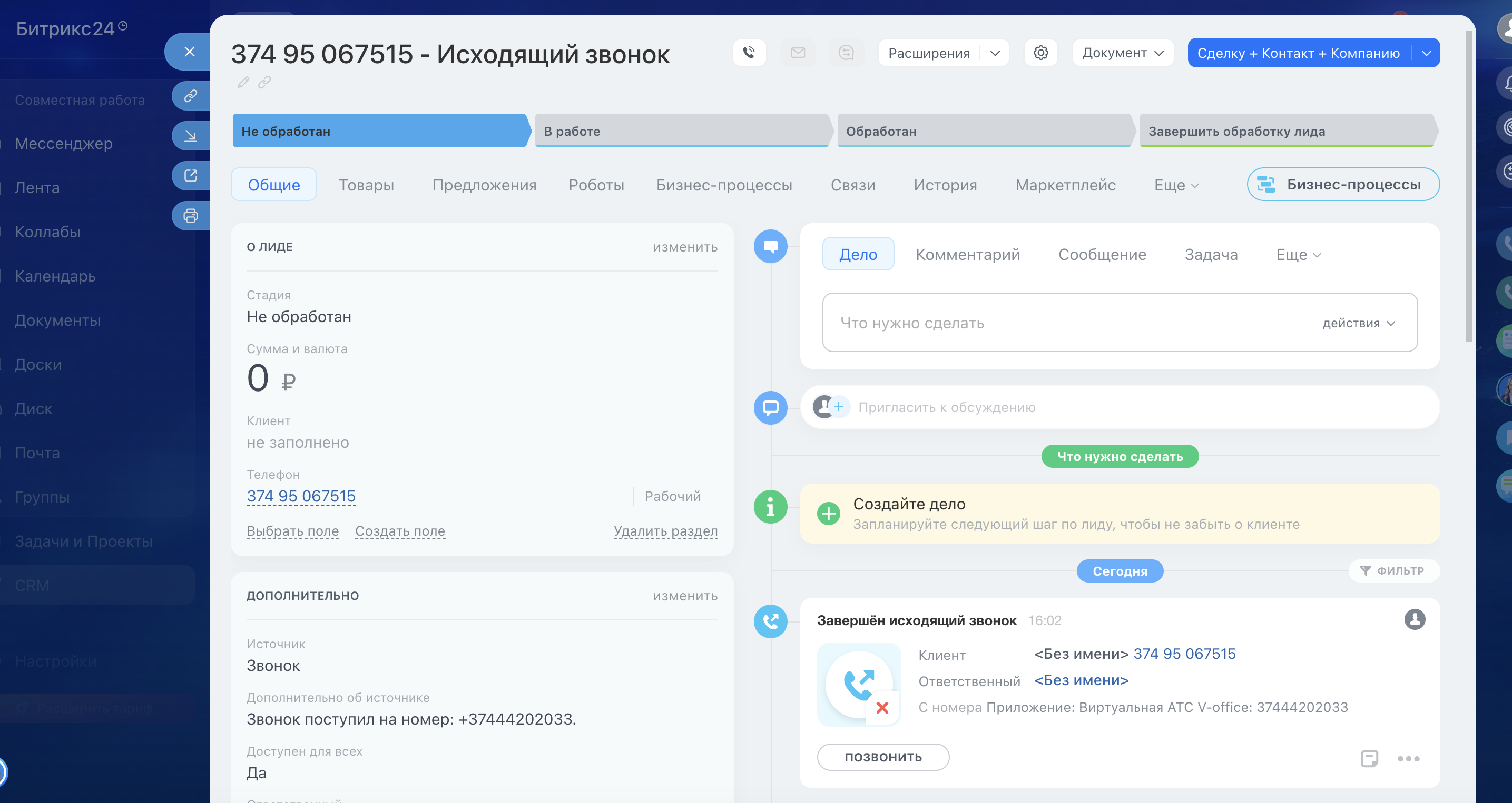 · Автоматическое создание лидов и сделок при звонках с новых номеров;