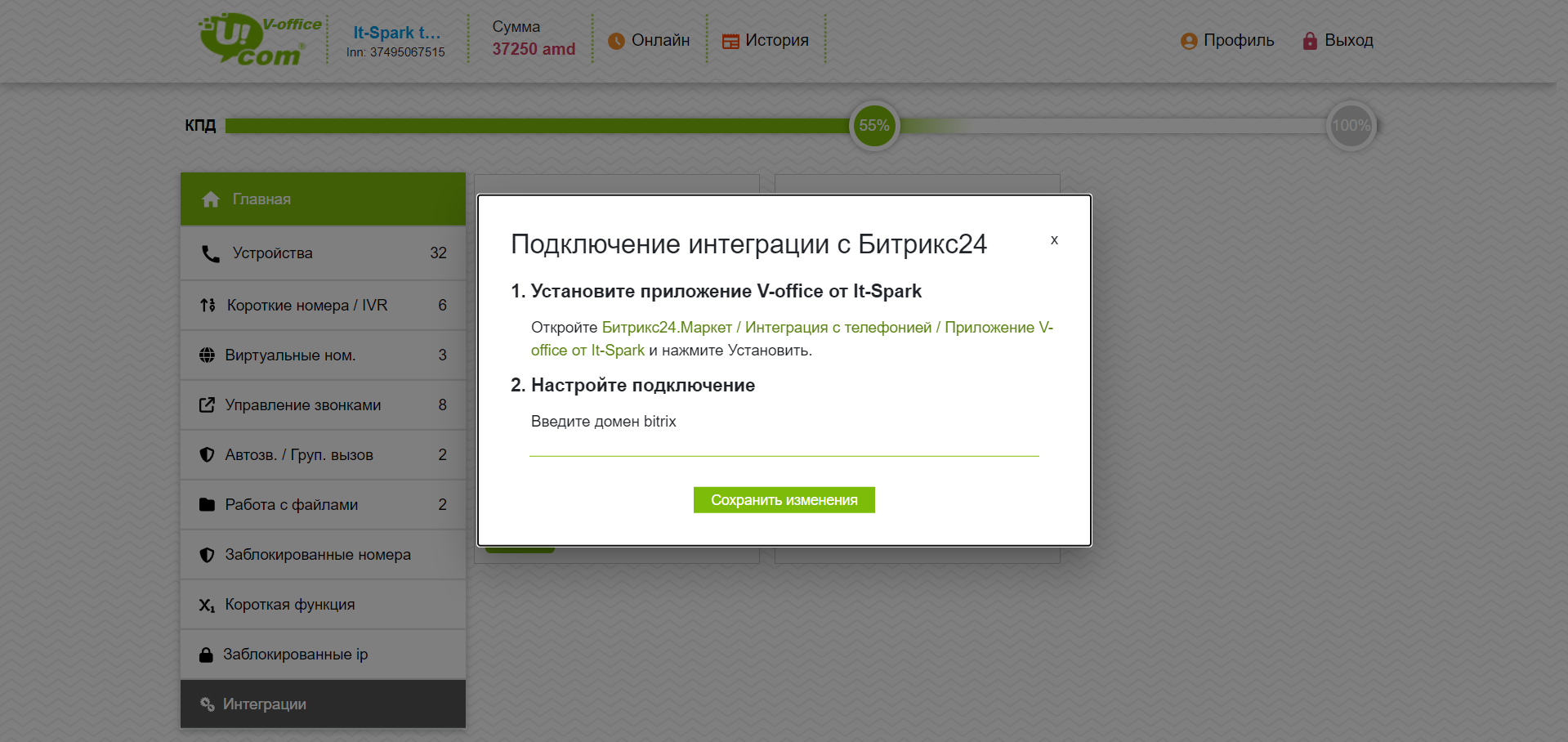 Возможности интеграции Виртуальной АТС V-office и Битрикс24: