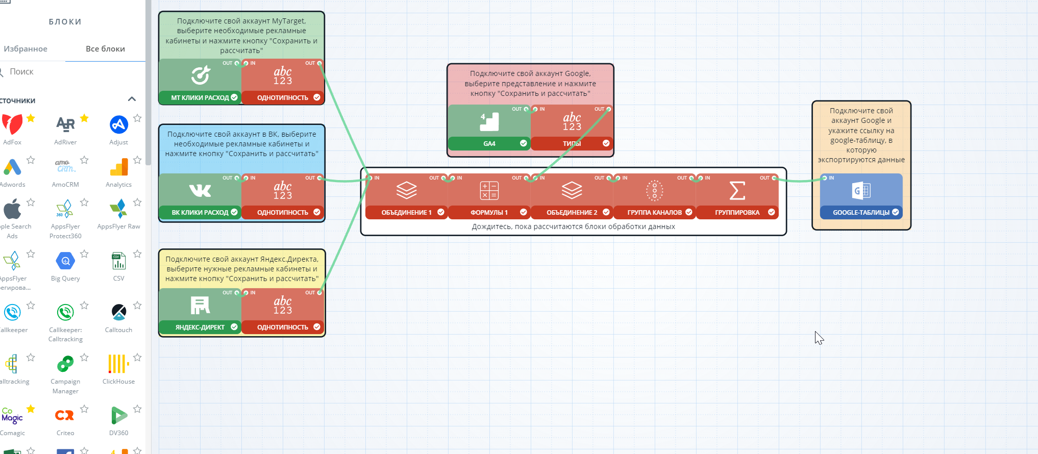 JetStat интегрируется с самыми популярными источниками данных, автоматически извлекая статистику из рекламных и аналитических систем. Сервис автоматически выполняет разделение, очистку и соотнесение данных за вас. Вам нужно лишь один раз настроить логику обработки статистики. Экспорт отчетов возможен в любом нужном для вас формате: Google или Excel-таблица, базы данных или облачное хранилище. Настройте расписание, и данные будут переданы к нужному времени. Автоматически экспортировать статистику можно до пяти раз в день.