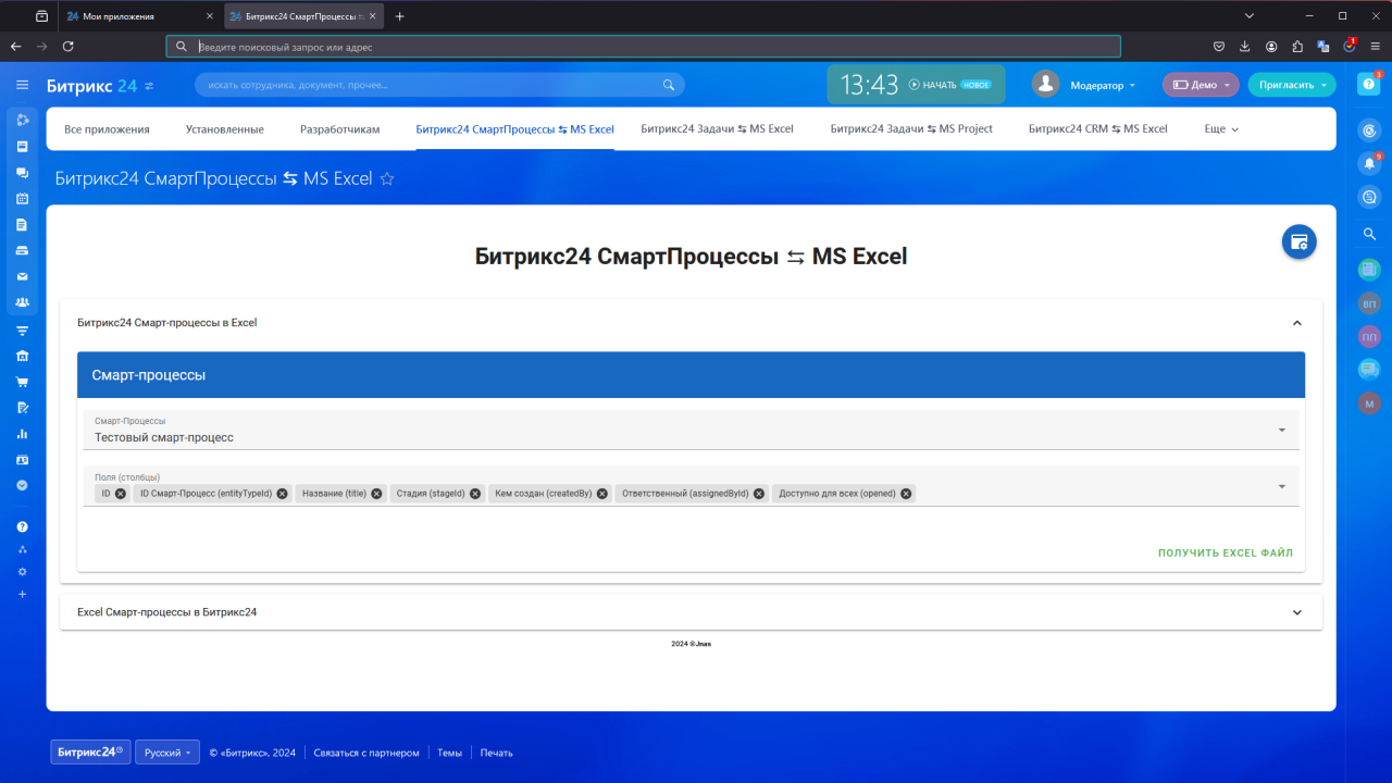 Битрикс24 СмартПроцессы ⇆ MS Excel