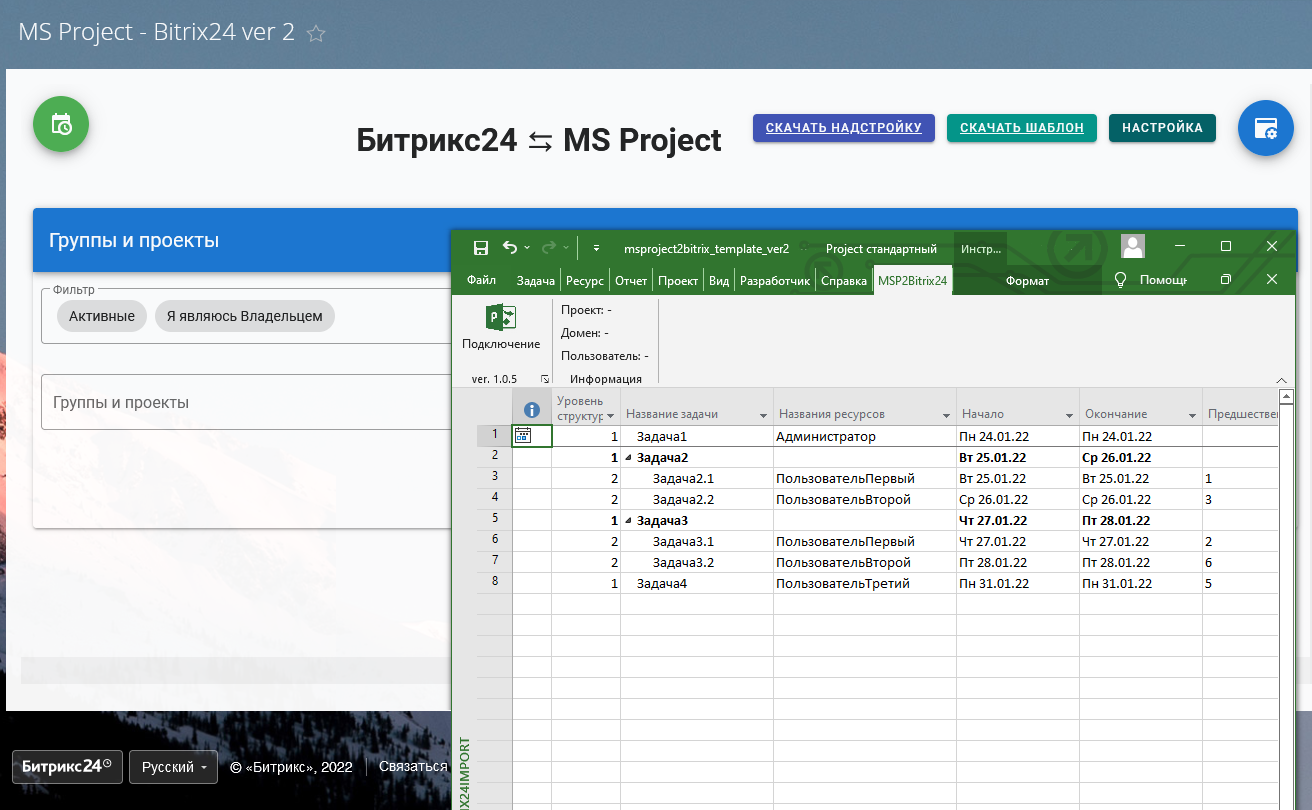 Перенос задач из MS Project в Bitrix24 и обратно.