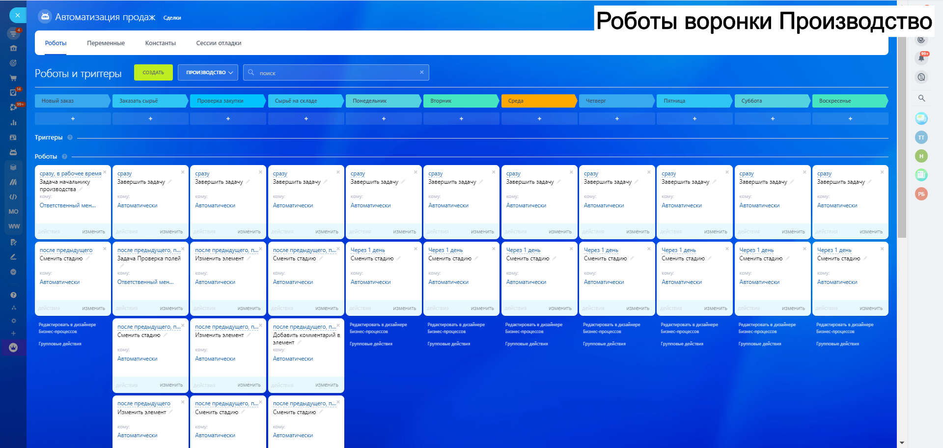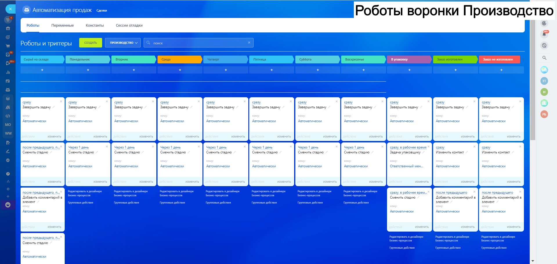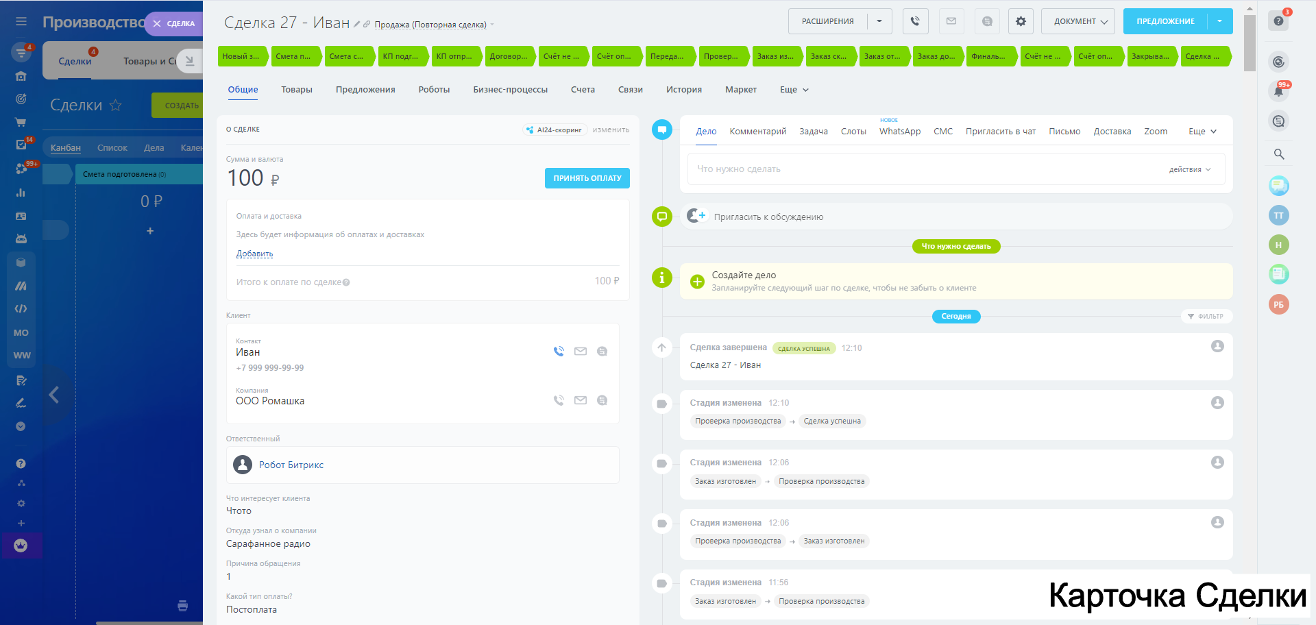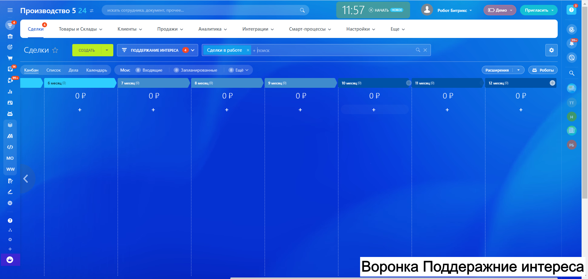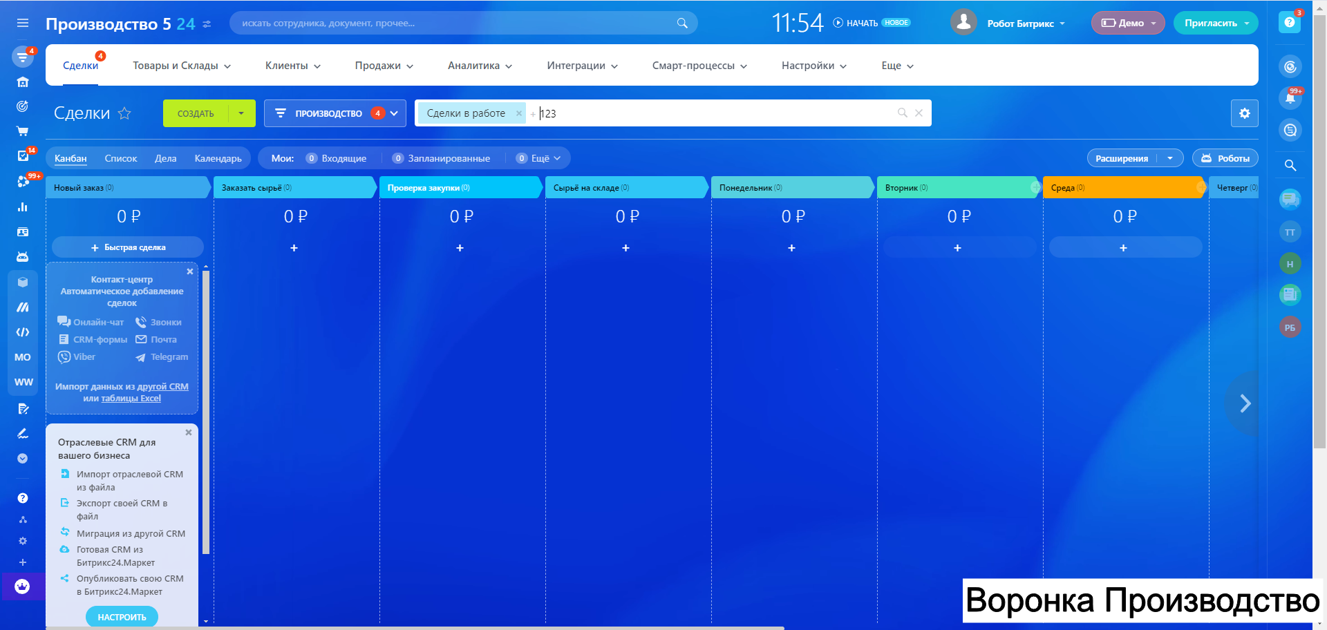 Готовая CRM для любой производственной компании отлаженное на множестве производств, подойдет для тарифов Битрикс24 Базовый, Стандартный, Профессиональный и выше.