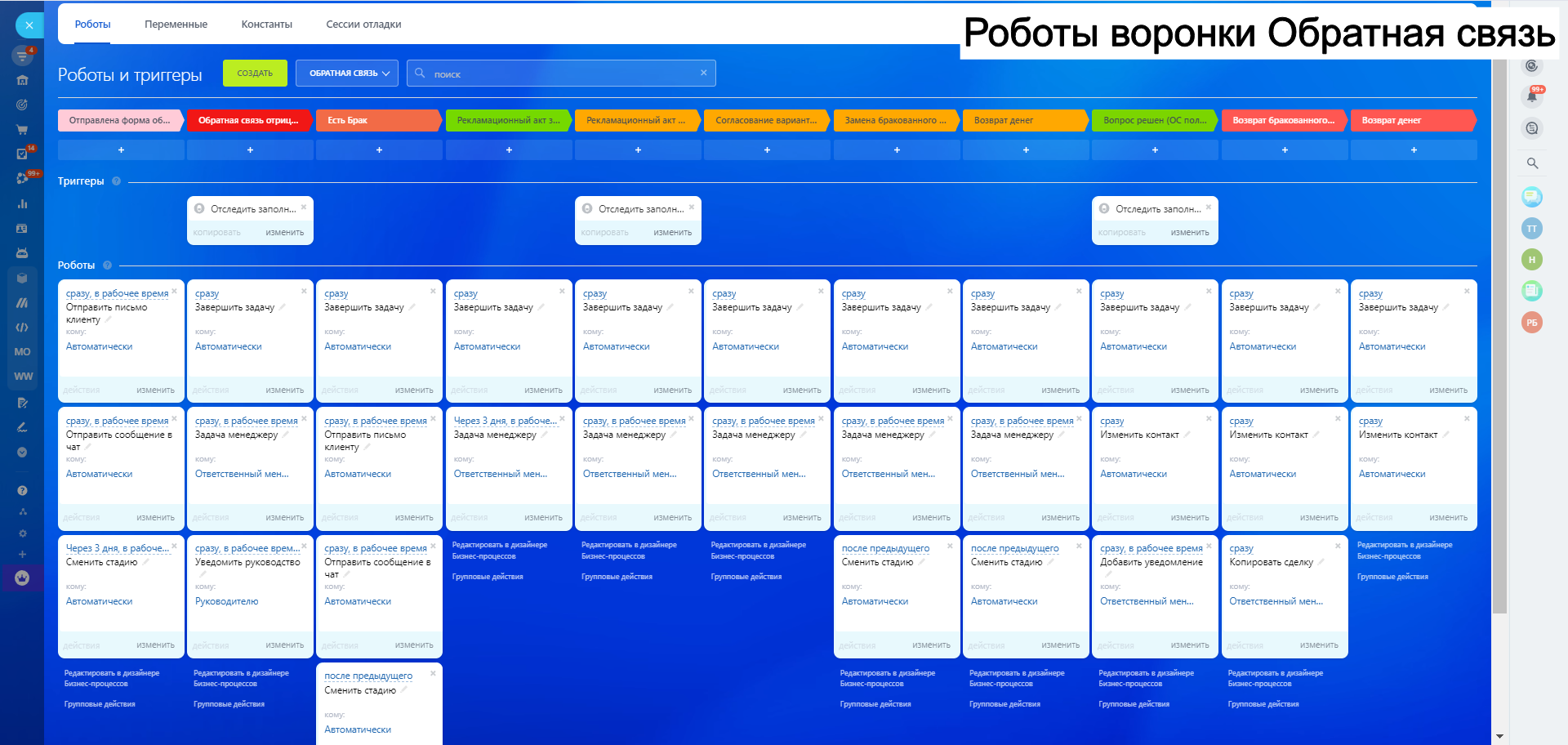 5. Автоворонку для получения обратной связи и работе с рекламацией