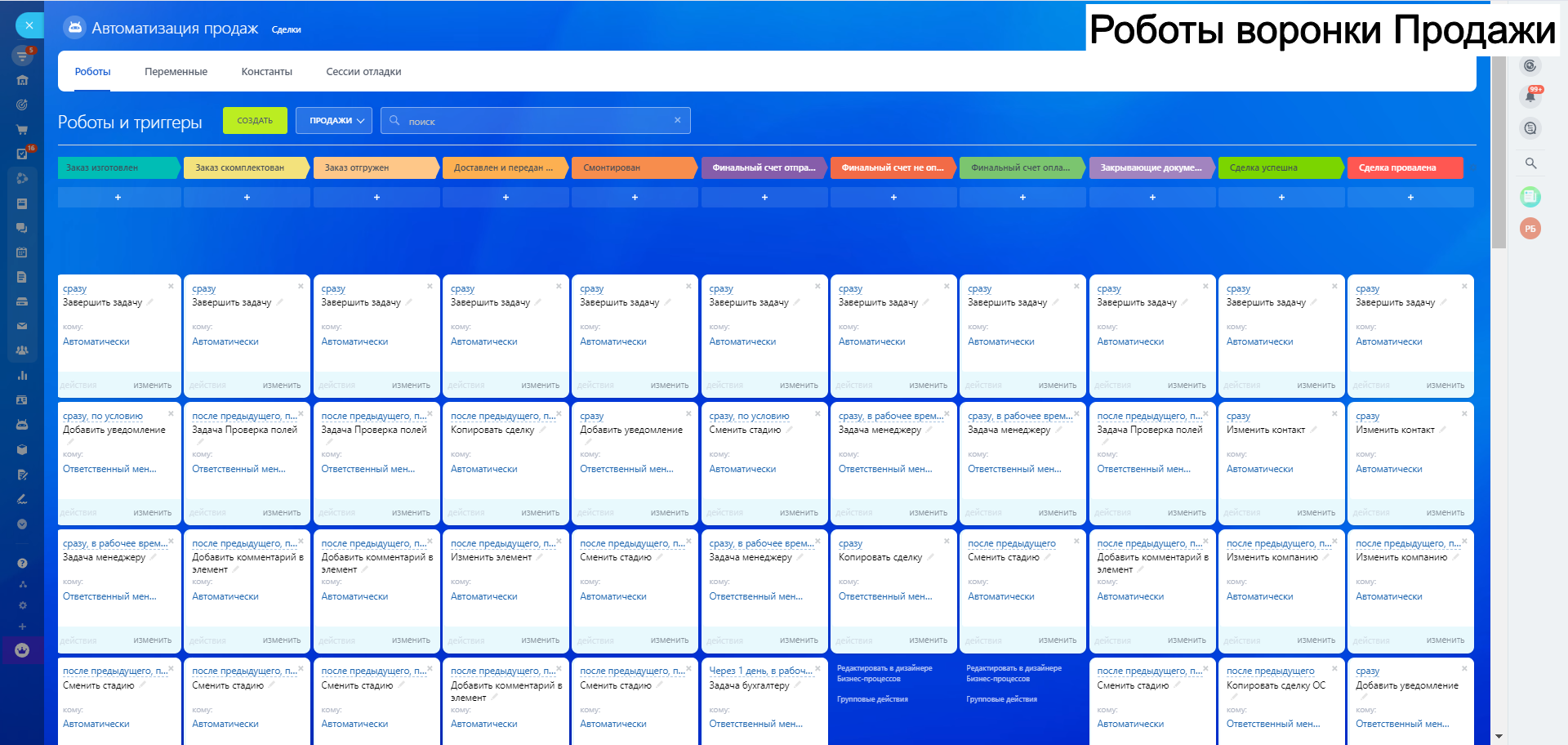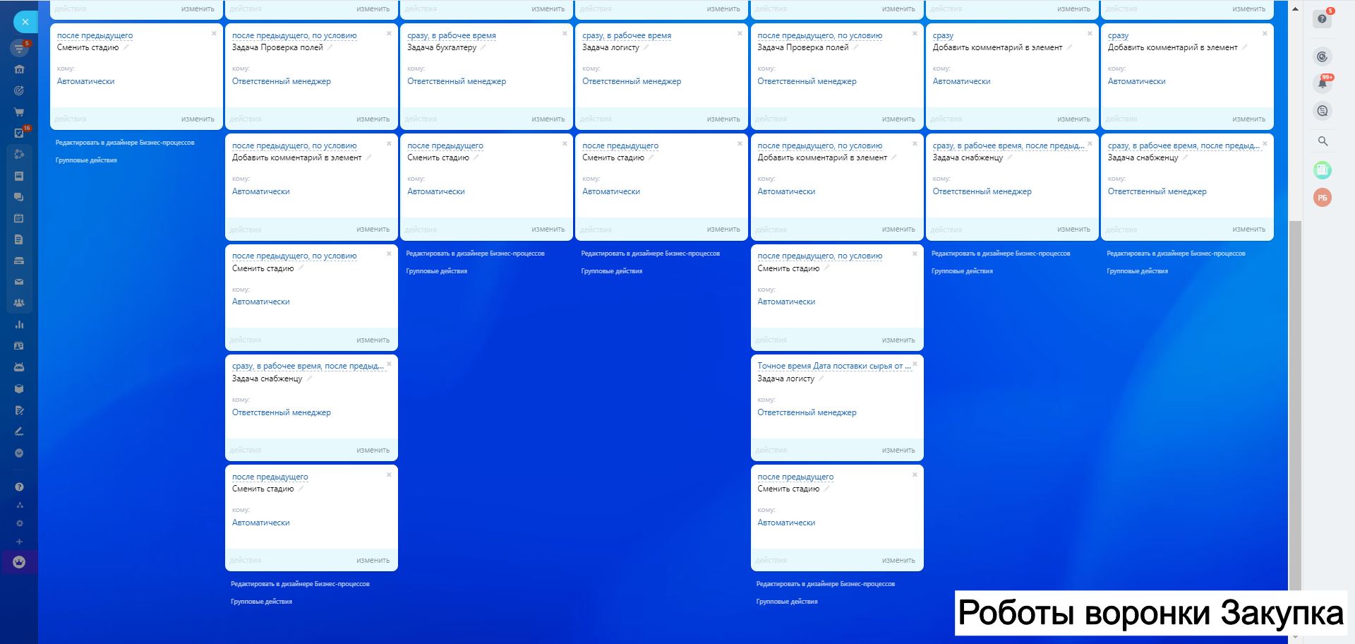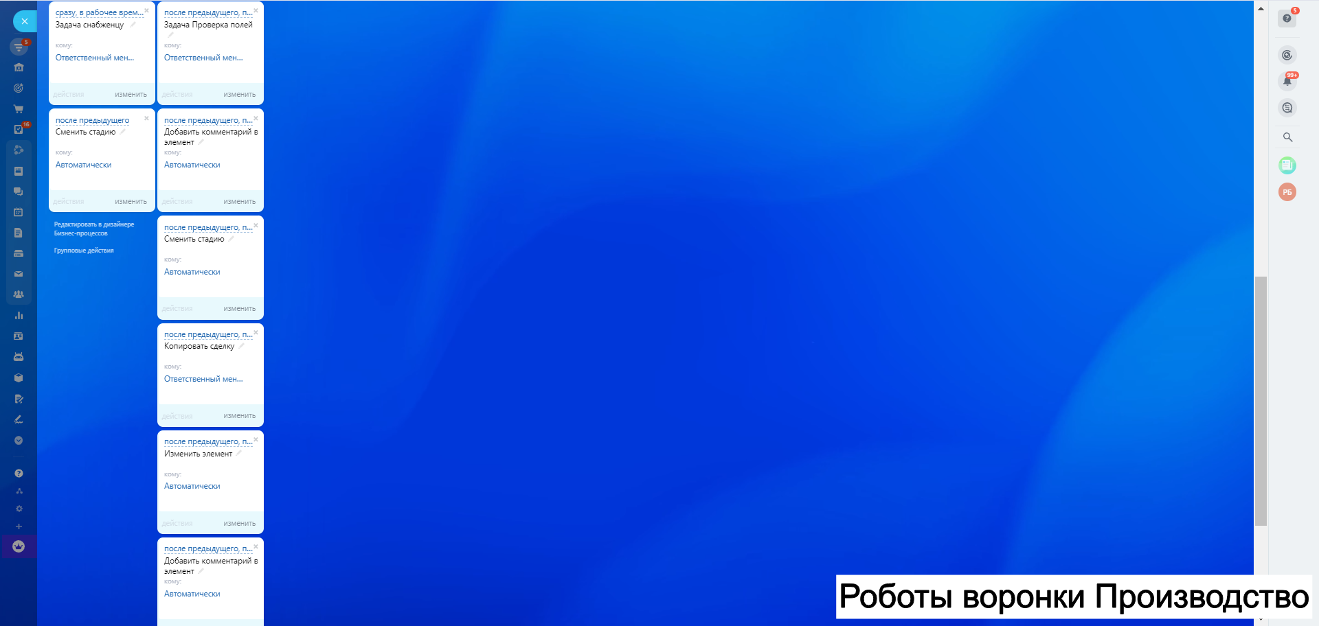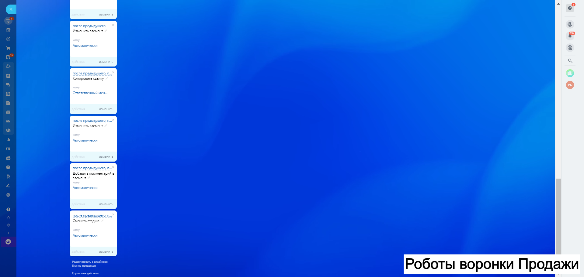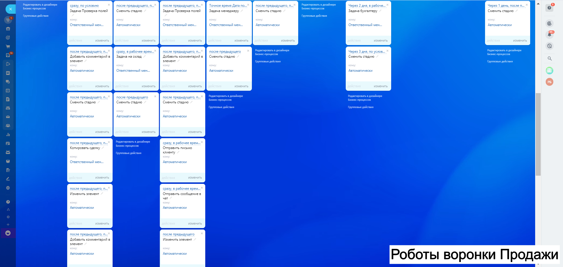 8. Автоворонку Дебиторская задолженность - для работы с клиентами по отсрочке и взысканий задолженности как финансовой так и закрывающих документов