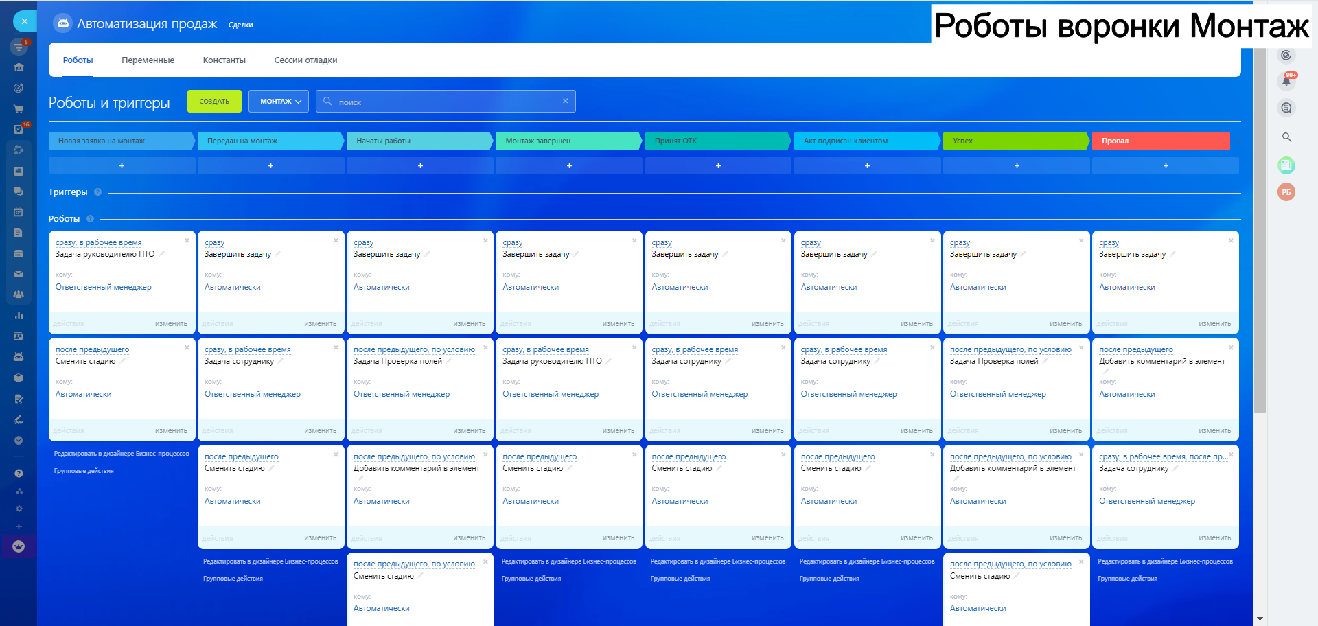 - Стадия Новая заявка на монтаж