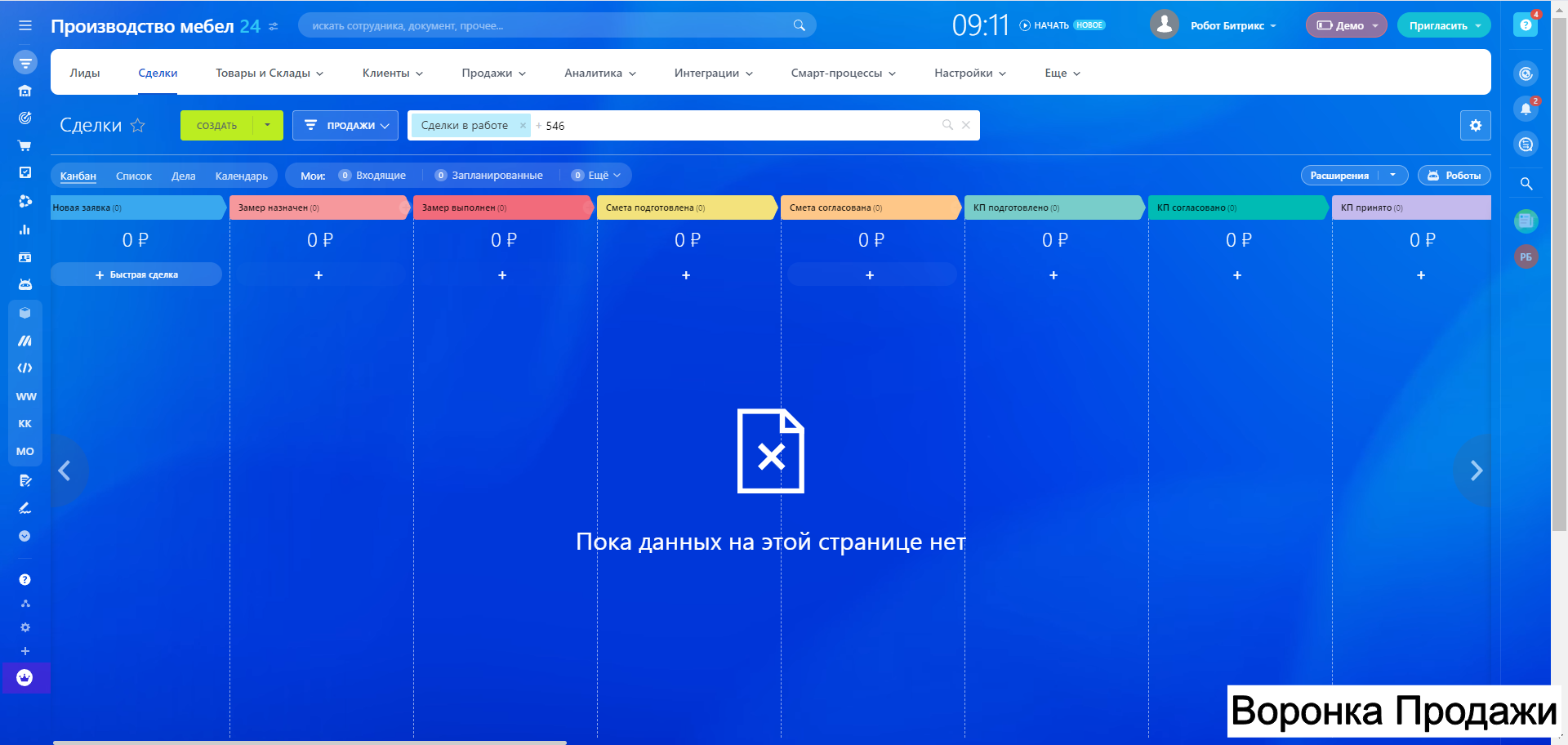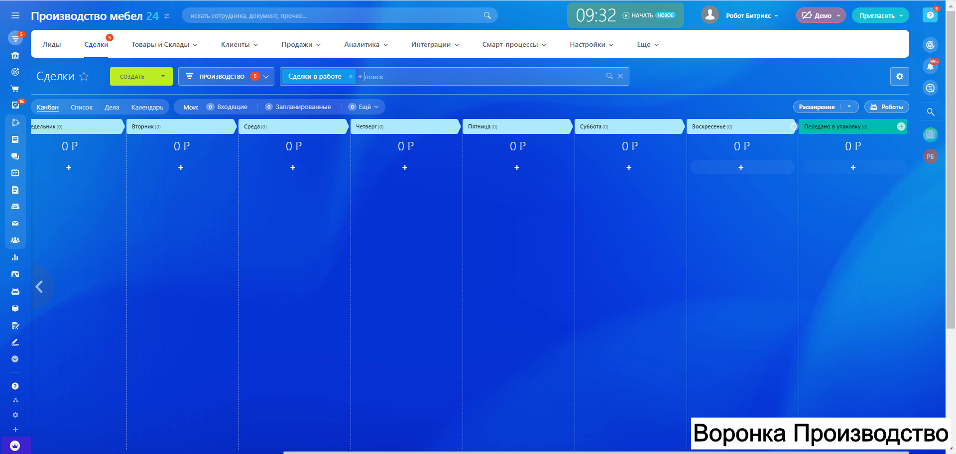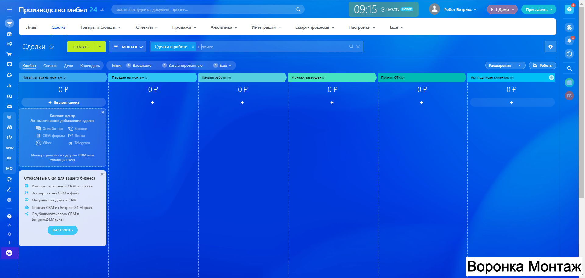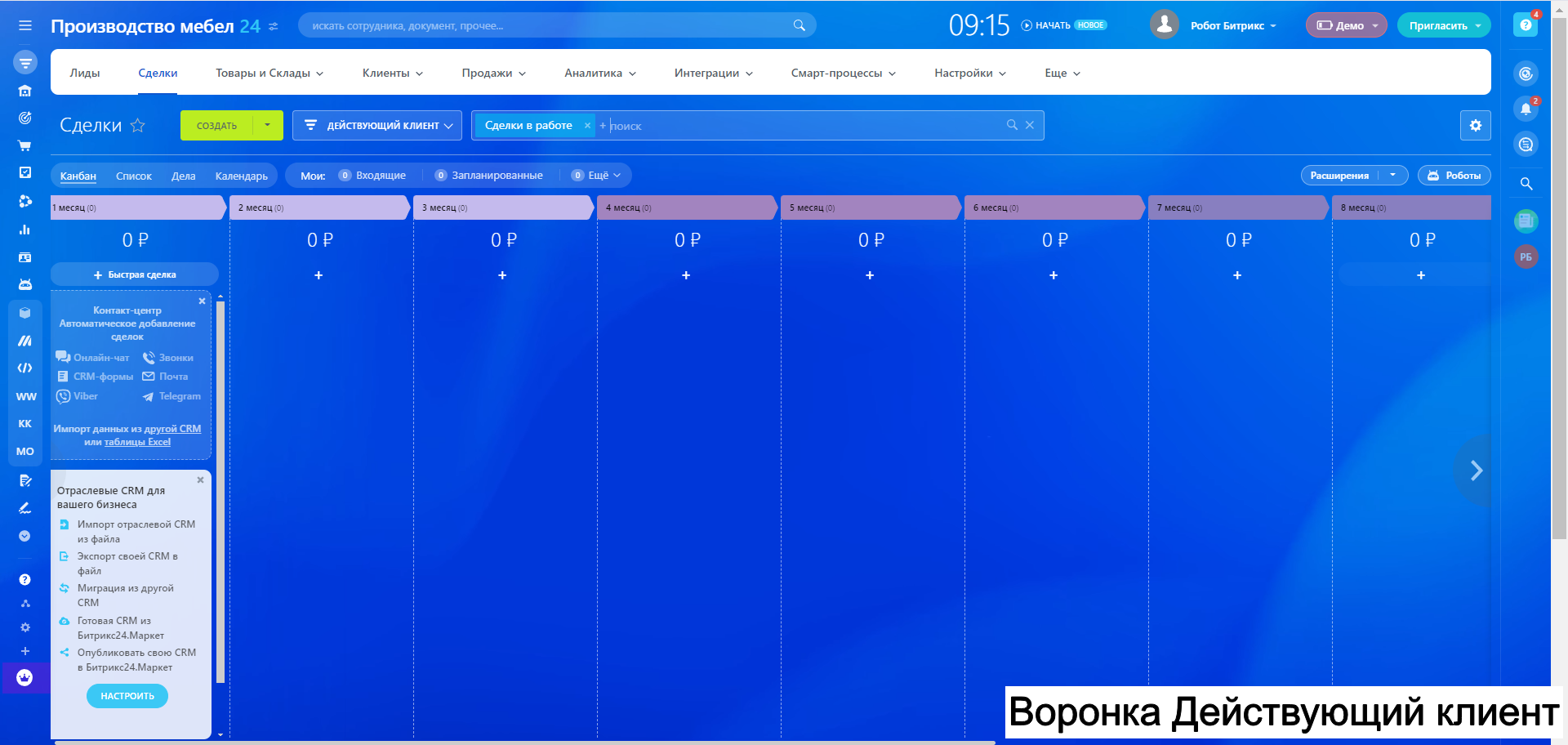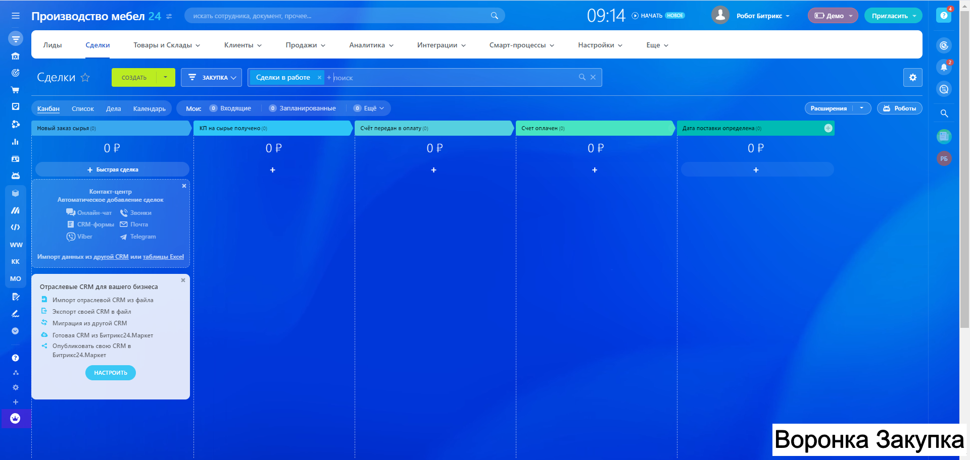 Готовая CRM для Производства МЕБЕЛИ - 10 воронок