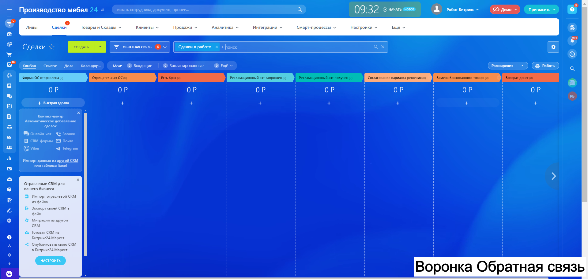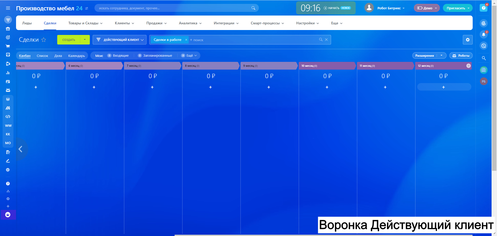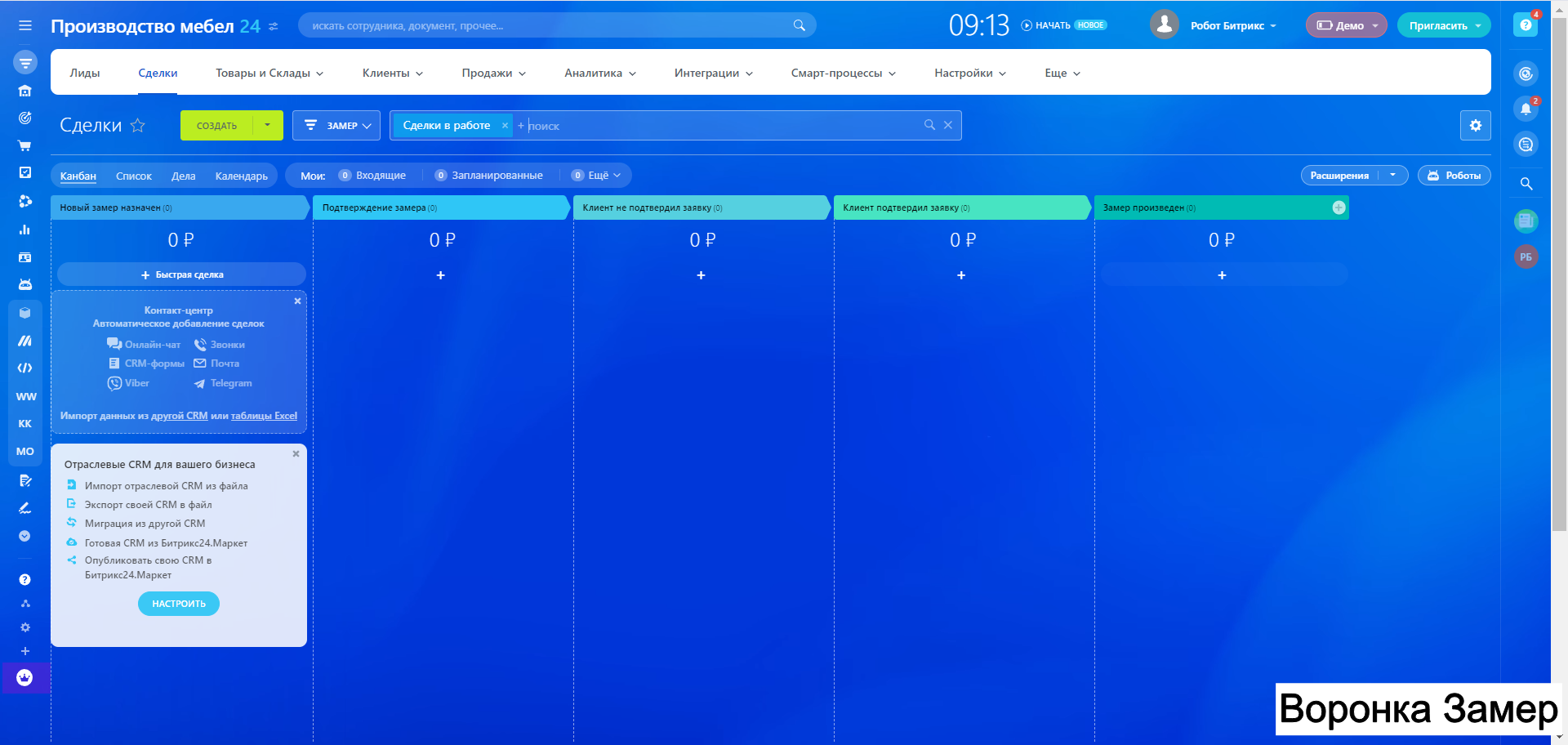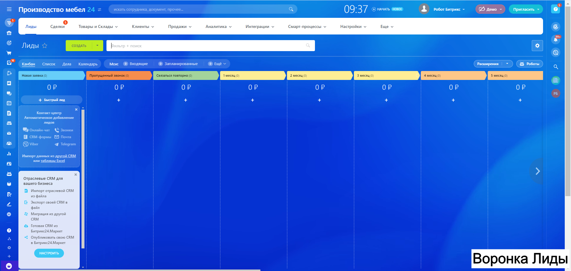 Готовая CRM для Производства МЕБЕЛИ - 10 воронок