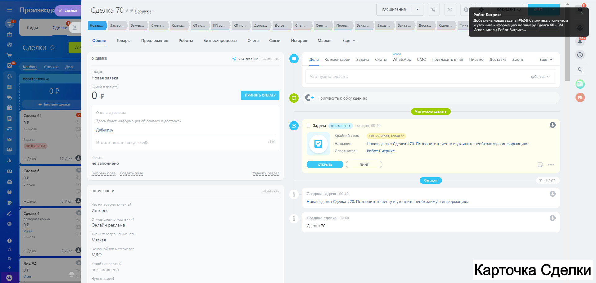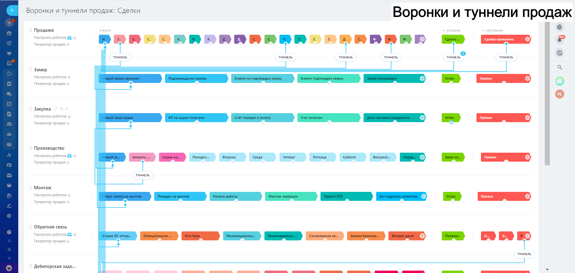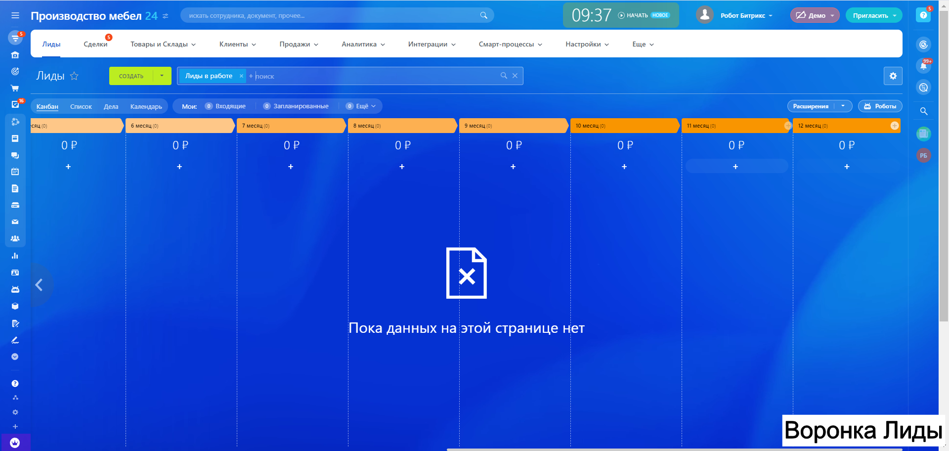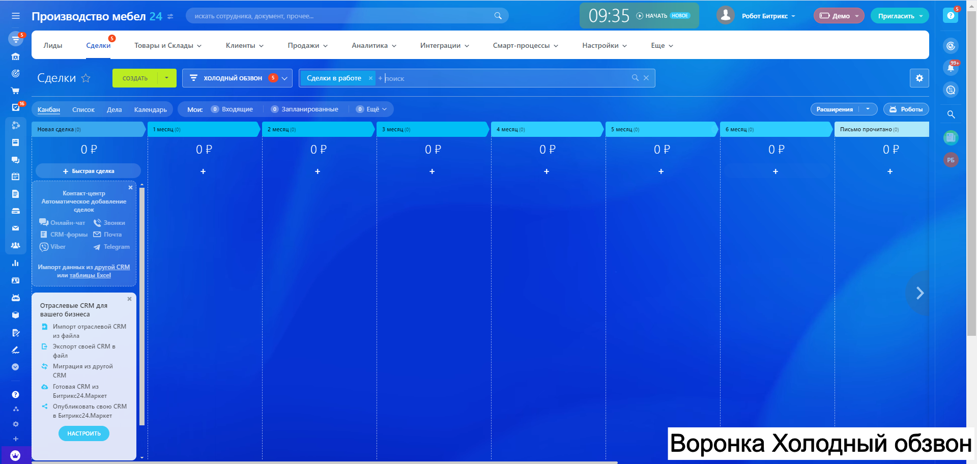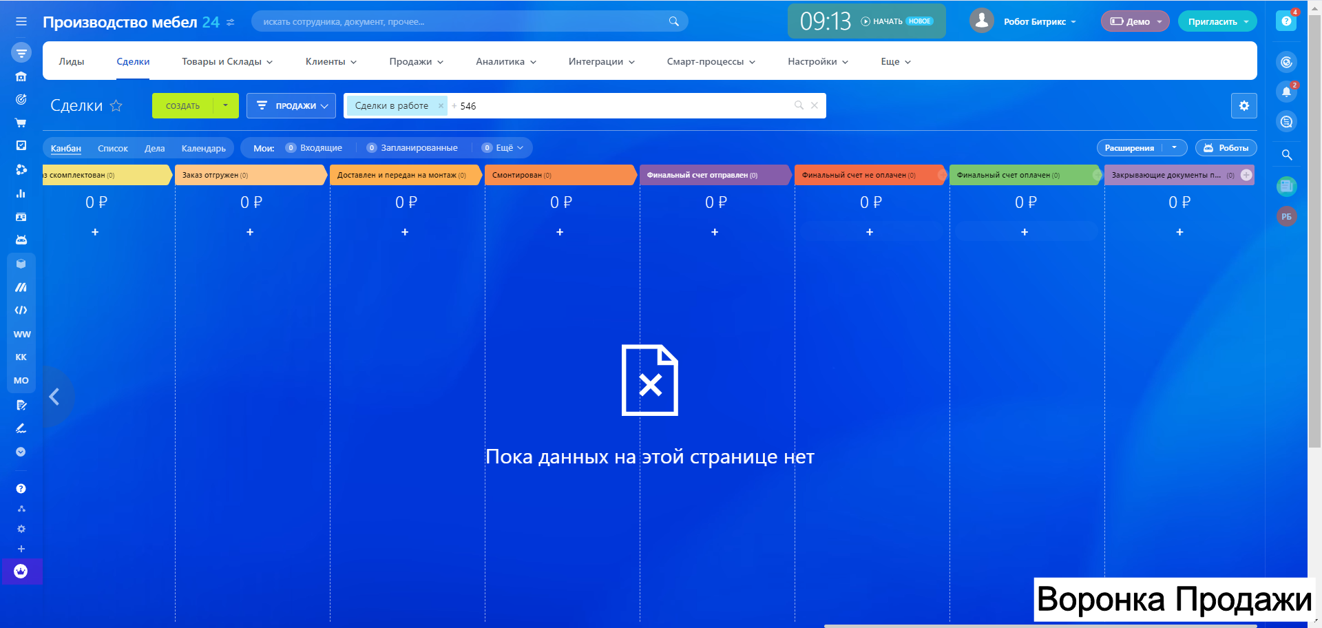 Готовая CRM для Производства МЕБЕЛИ - 10 воронок