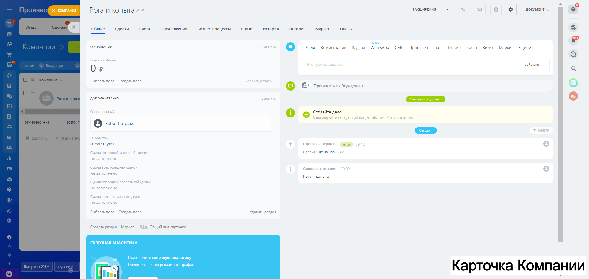 - Стадия Договор подписан, счет отправлен